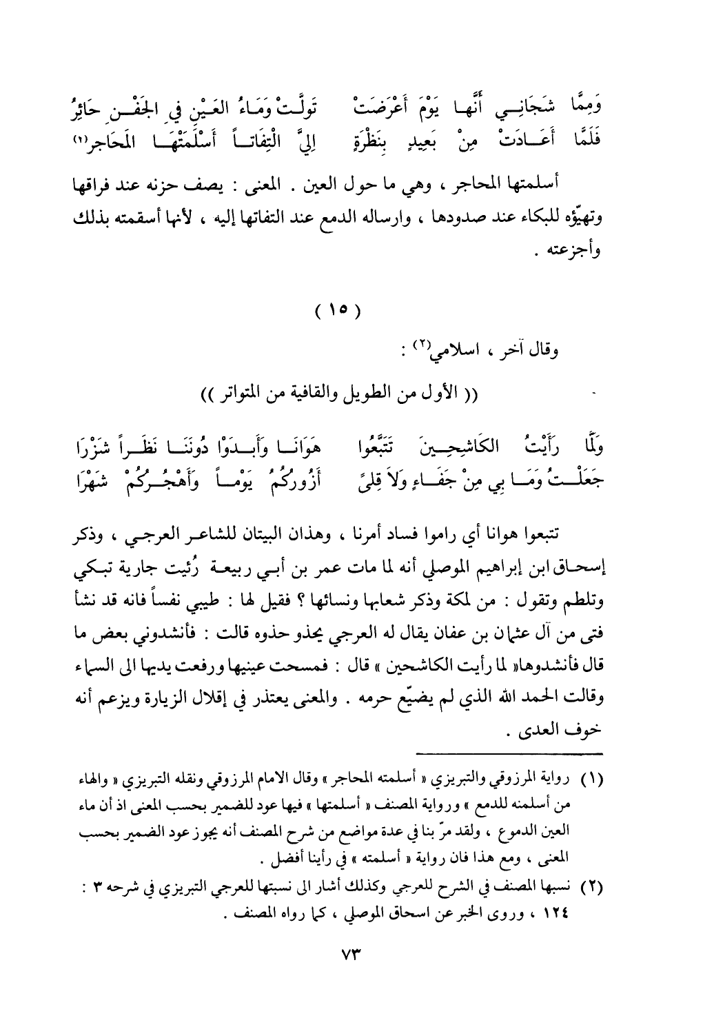فلما أعادت من بعيٍد بنظرٍة إلى التفاتًا أسلمتها المحاجر