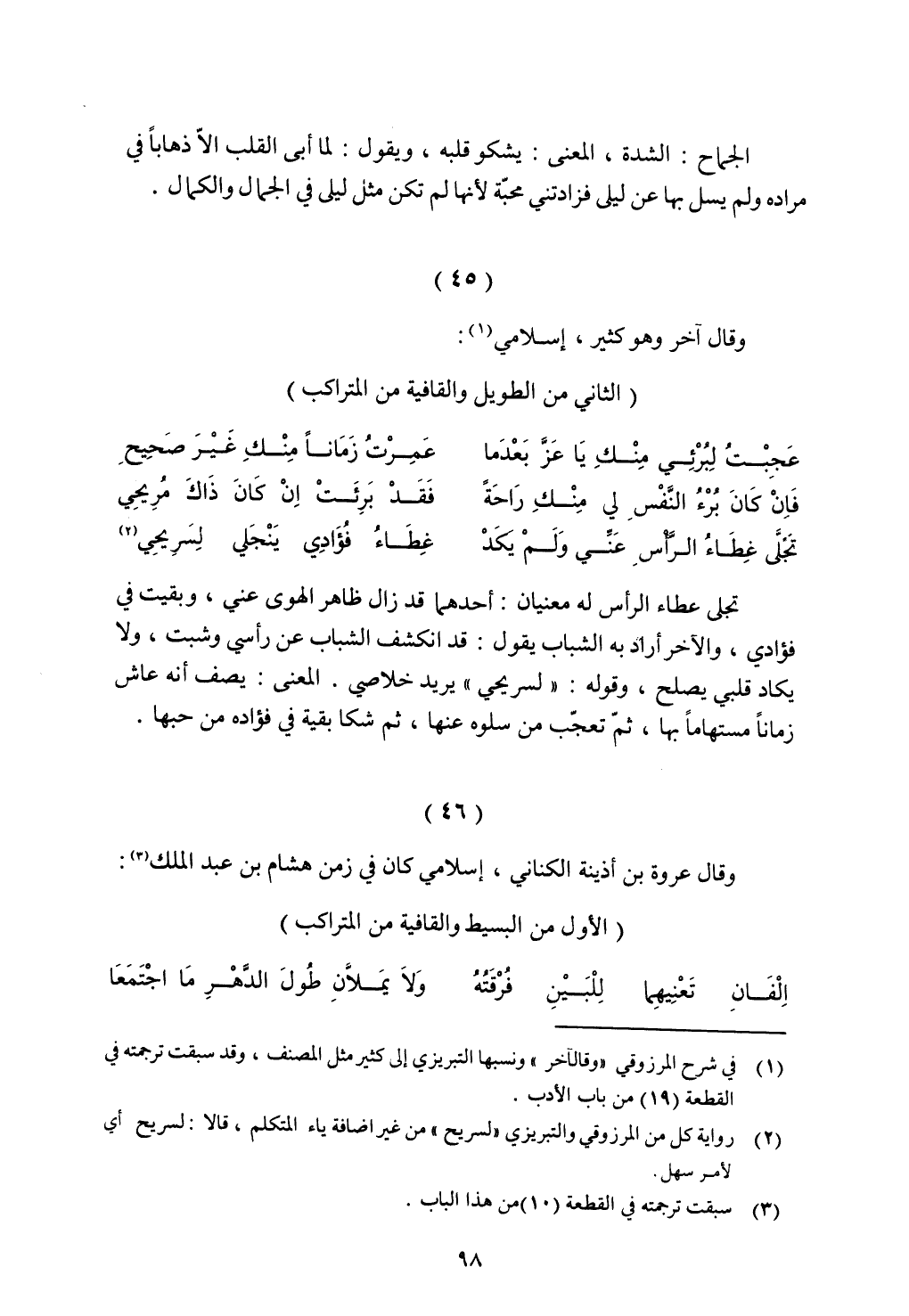 وقال عروة بن أذينة الكناني, إسلامي كان في زمن هشام بن عبد الملك: