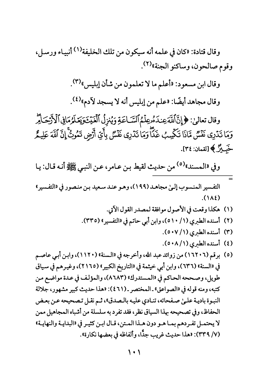 وقال ابن مسعود: "أعلم ما لا تعلمون من شأن إبليس" (¬٣).