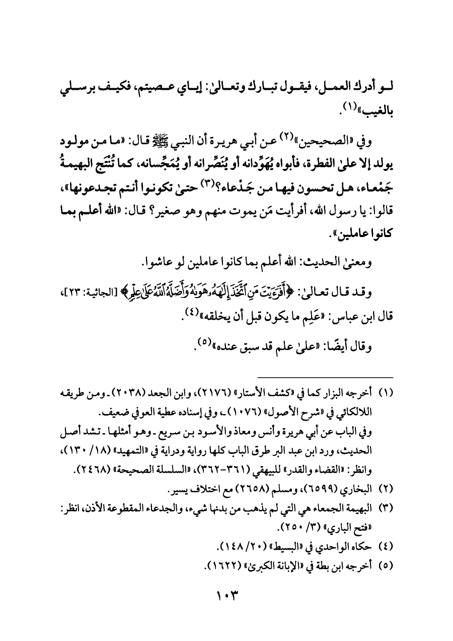 وقد قال تعالى: {أَفَرَأَيْتَ مَنِ اتَّخَذَ إِلَهَهُ هَوَاهُ وَأَضَلَّهُ اللَّهُ عَلَى عِلْمٍ} [الجاثية: ٢٣]، قال ابن عباس: "عَلِم ما يكون قبل أن يخلقه" (¬٤).