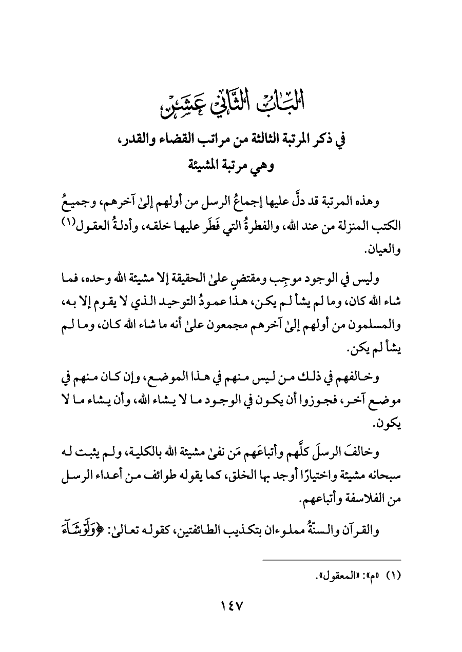 في ذكر المرتبة الثالثة من مراتب القضاء والقدر، وهي مرتبة المشيئة