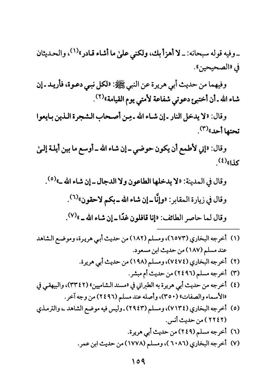وقال لما حاصر الطائف: "إنا قافلون غدًا ــ إن شاء الله ــ " (¬٧).