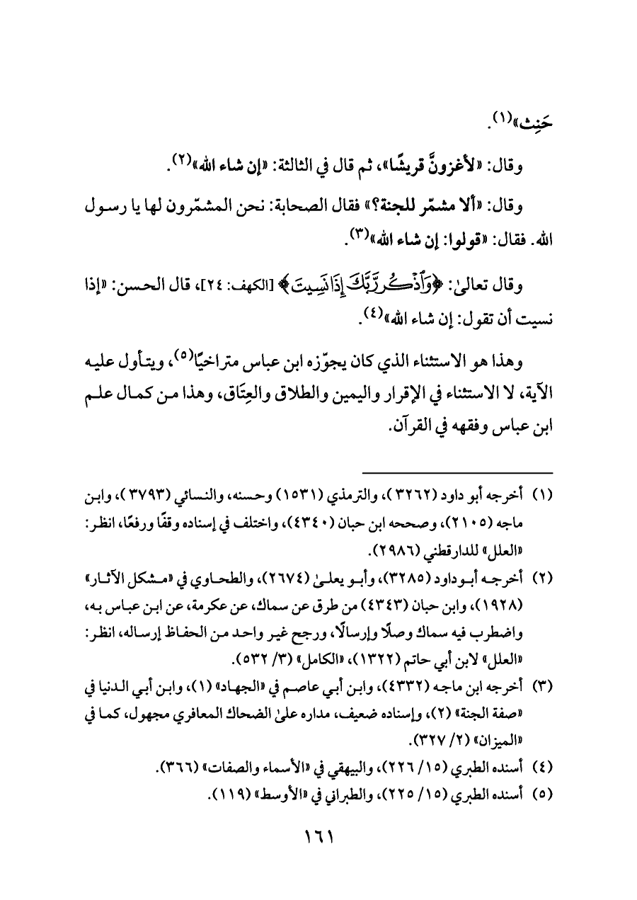 وهذا هو الاستثناء الذي كان يجوّزه ابن عباس متراخيًا (¬٥)، ويتأول عليه الآية، لا الاستثناء في الإقرار واليمين والطلاق والعِتَاق، وهذا من كمال علم ابن عباس وفقهه في القرآن.