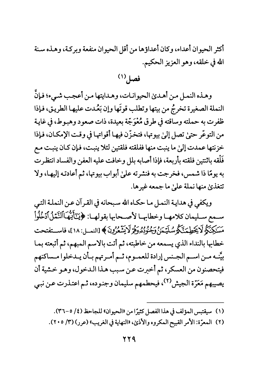 (¬١) سيقتبس المؤلف في هذا الفصل كثيرًا من "الحيوان" للجاحظ (٤/ ٥ - ٣٦).