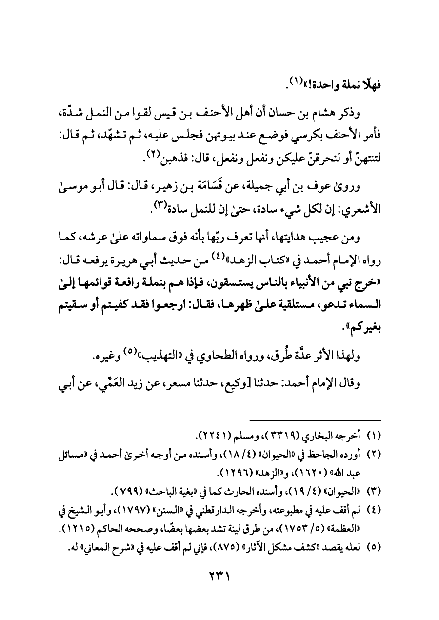 فهلّا نملة واحدة! " (¬١).