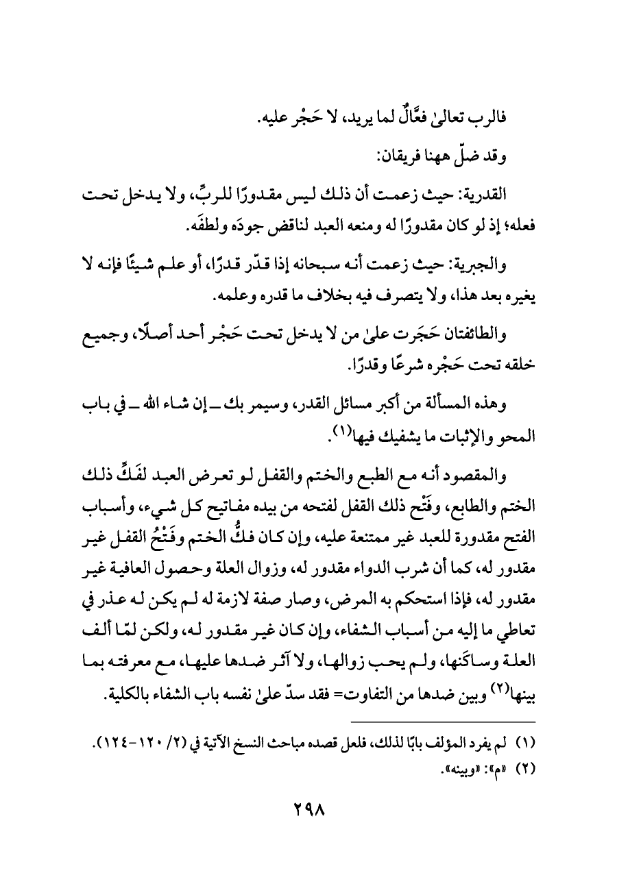 فالرب تعالى فعَّالٌ لما يريد، لا حَجْر عليه.