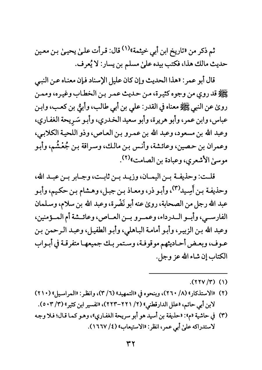 قلت: وحذيفة بن اليمان، وزيد بن ثابت، وجابر بن عبد الله، وحذيفة بن أَسِيد (¬٣)، وأبو ذر، ومعاذ بن جبل، وهشام بن حكيم، وأبو عبد الله رجل من الصحابة، روى عنه أبو نَضْرة، وعبد الله بن سلام، وسلمان الفارسي، وأبو الدرداء، وعمرو بن العاص، وعائشة أم المؤمنين، وعبد الله بن الزبير، وأبو أمامة الباهلي، وأبو الطفيل، وعبد الرحمن بن عوف، وبعض أحاديثهم موقوفة، وستمر بك جميعها متفرقة في أبواب الكتاب إن شاء الله عز وجل.