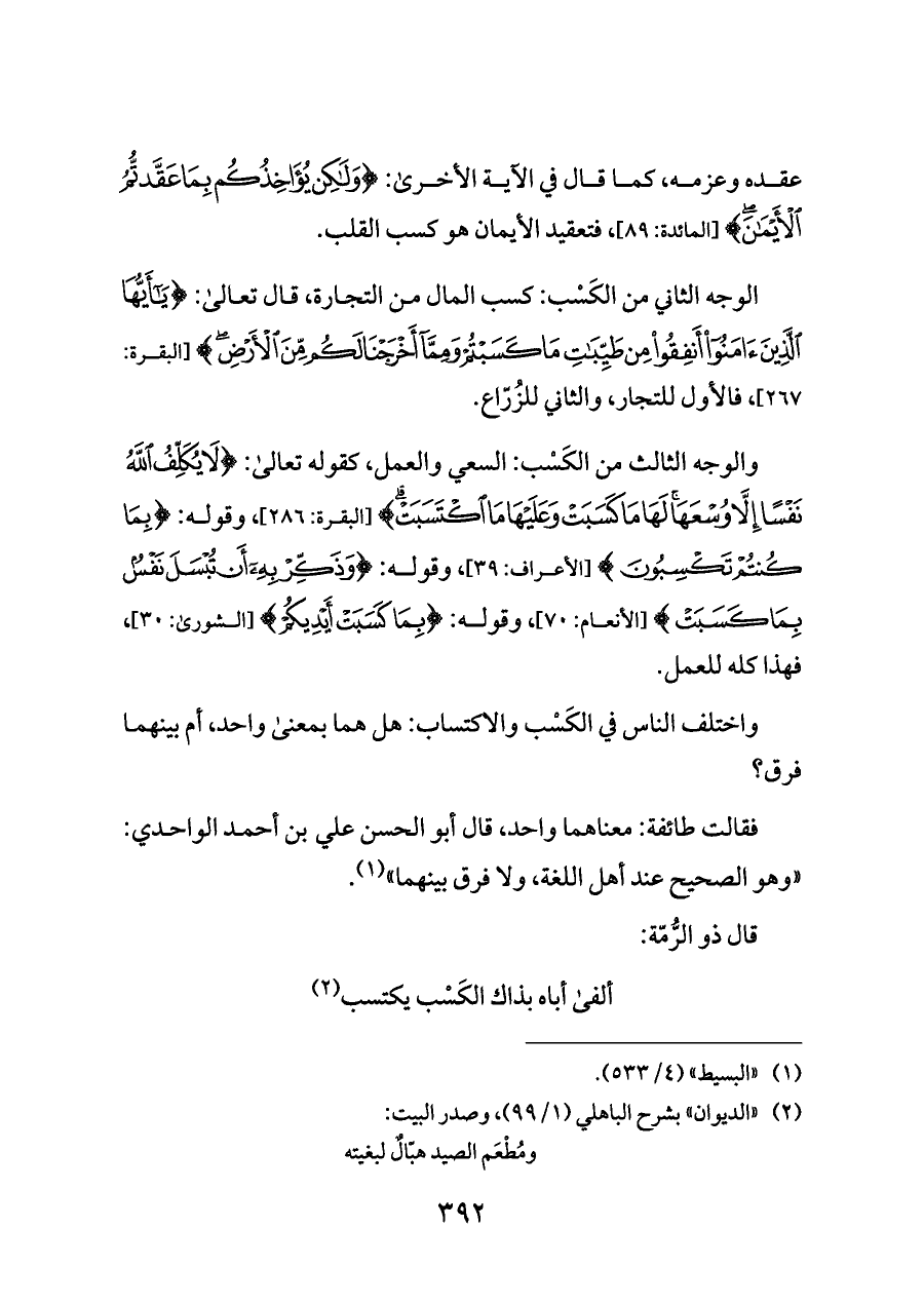 واختلف الناس في الكَسْب والاكتساب: هل هما بمعنى واحد، أم بينهما فرق؟