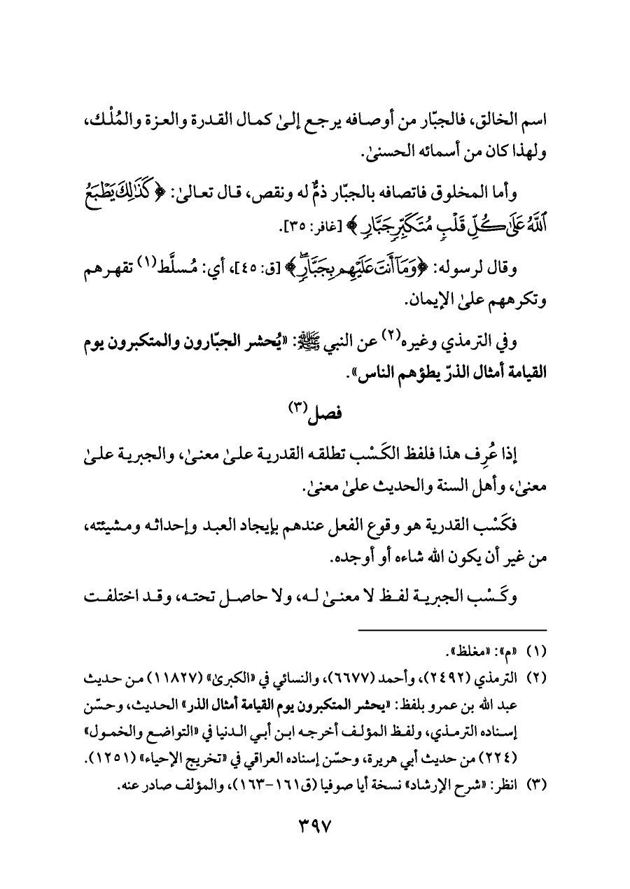 (¬٣) انظر: "شرح الإرشاد" نسخة أيا صوفيا (ق ١٦١ - ١٦٣)، والمؤلف صادر عنه.