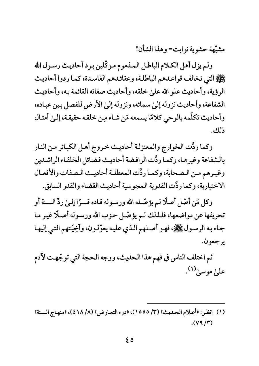 (¬١) انظر: "أعلام الحديث" (٣/ ١٥٥٥)، "درء التعارض" (٨/ ٤١٨)، "منهاج السنة" (٣/ ٧٩).