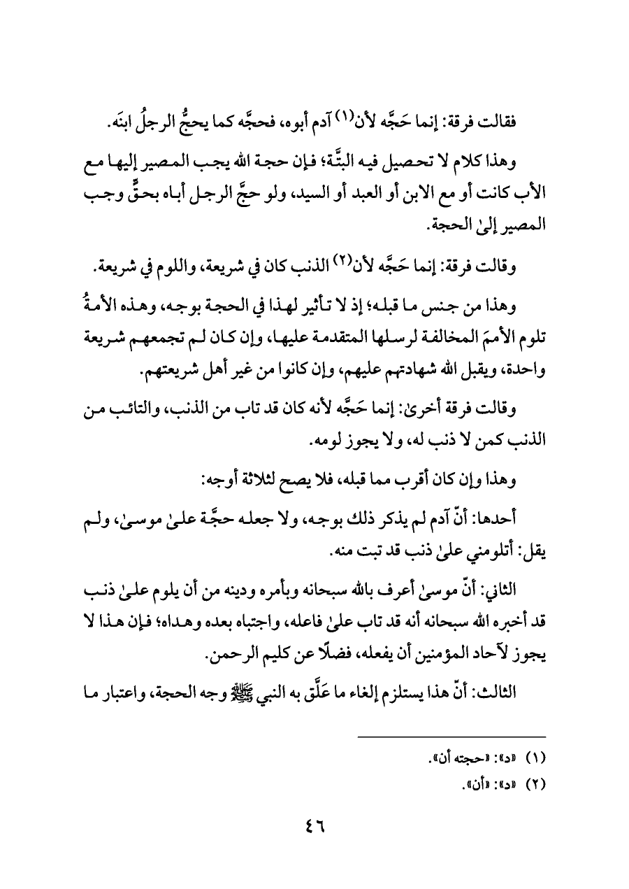 (¬١) "د": "حجته أن".