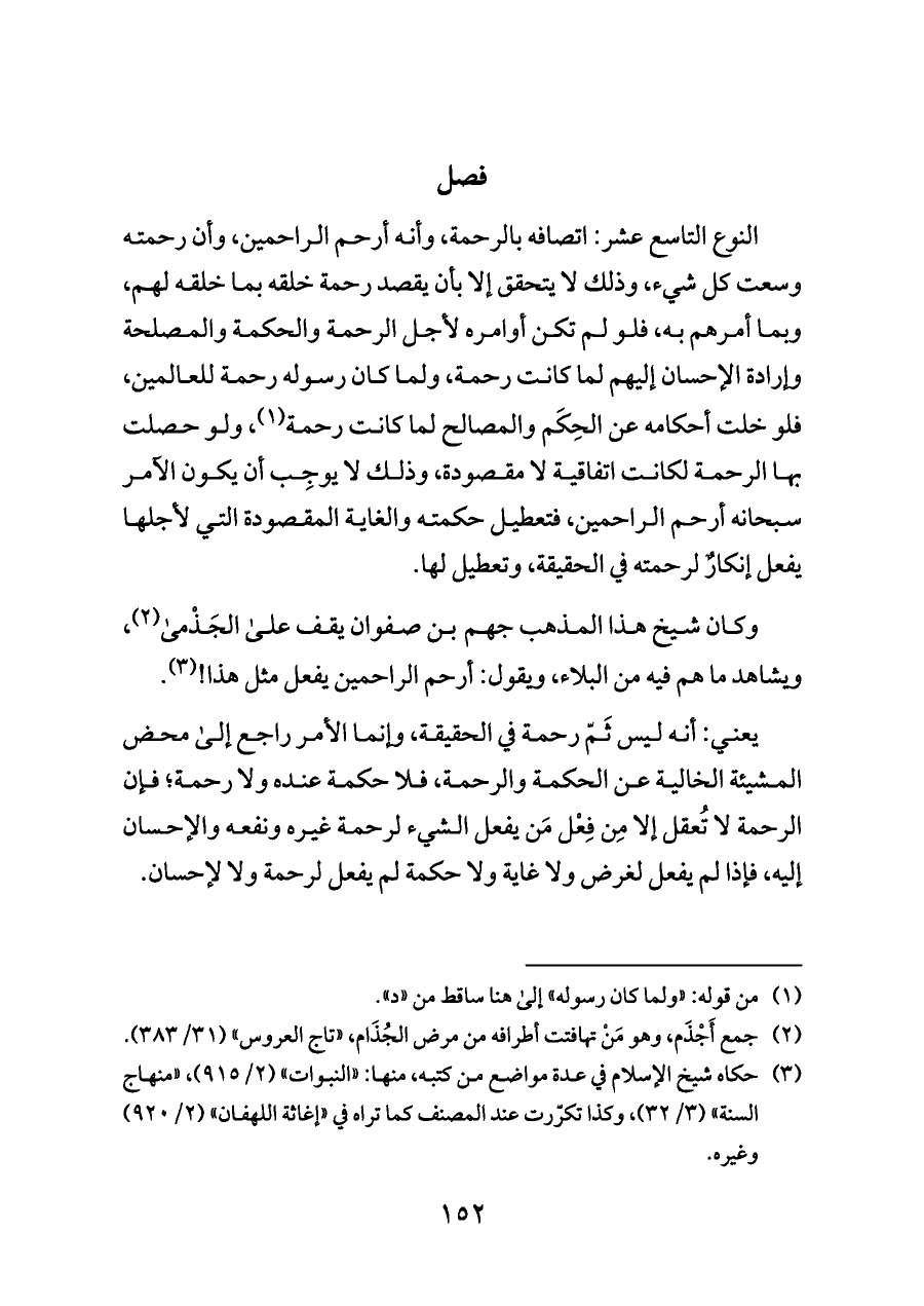 وكان شيخ هذا المذهب جهم بن صفوان يقف على الجَذْمى (¬٢)، ويشاهد ما هم فيه من البلاء، ويقول: أرحم الراحمين يفعل مثل هذا! (¬٣).