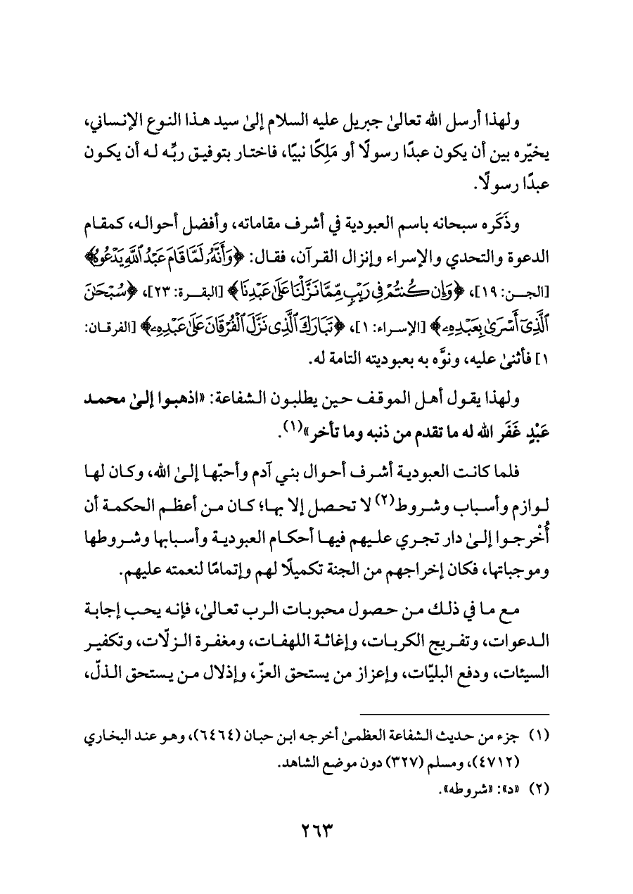 ولهذا أرسل الله تعالى جبريل عليه السلام إلى سيد هذا النوع الإنساني، يخيّره بين أن يكون عبدًا رسولًا أو مَلِكًا نبيًا، فاختار بتوفيق ربِّه له أن يكون عبدًا رسولًا.
