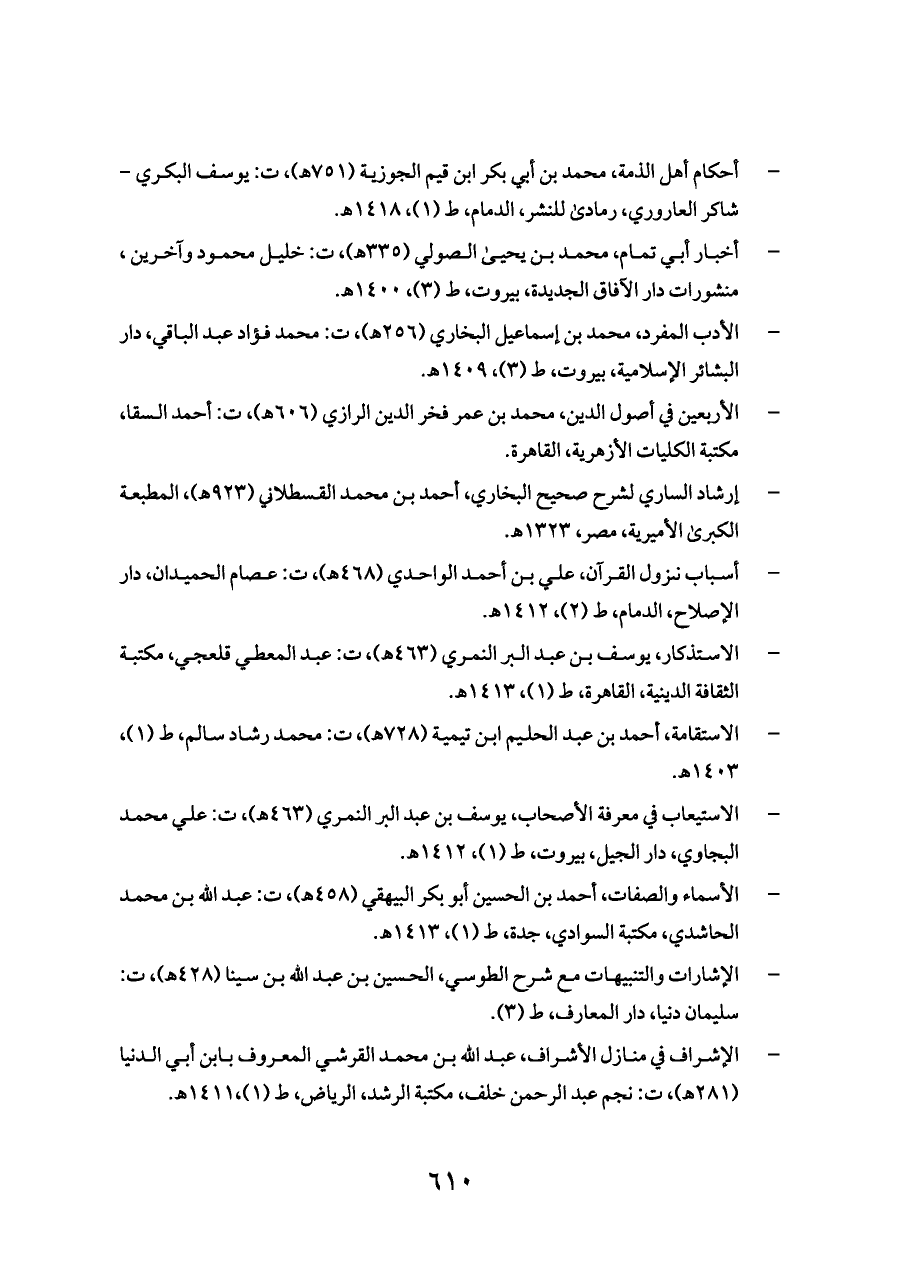 - الاستقامة، أحمد بن عبد الحليم ابن تيمية (٧٢٨ هـ)، ت: محمد رشاد سالم، ط (١)، ١٤٠٣ هـ.