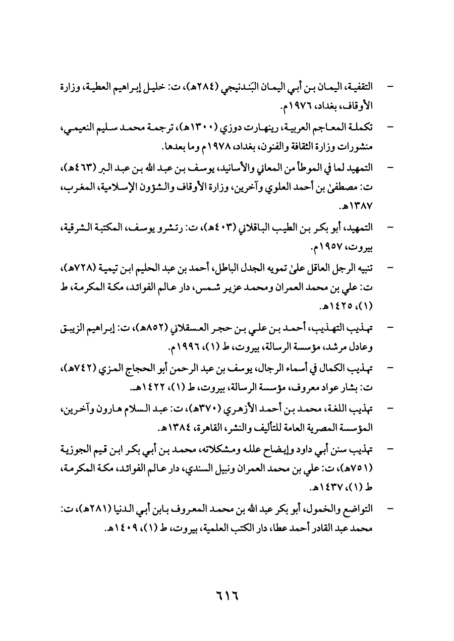 - تهذيب التهذيب، أحمد بن علي بن حجر العسقلاني (٨٥٢ هـ)، ت: إبراهيم الزيبق وعادل مرشد، مؤسسة الرسالة، بيروت، ط (١)، ١٩٩٦ م.