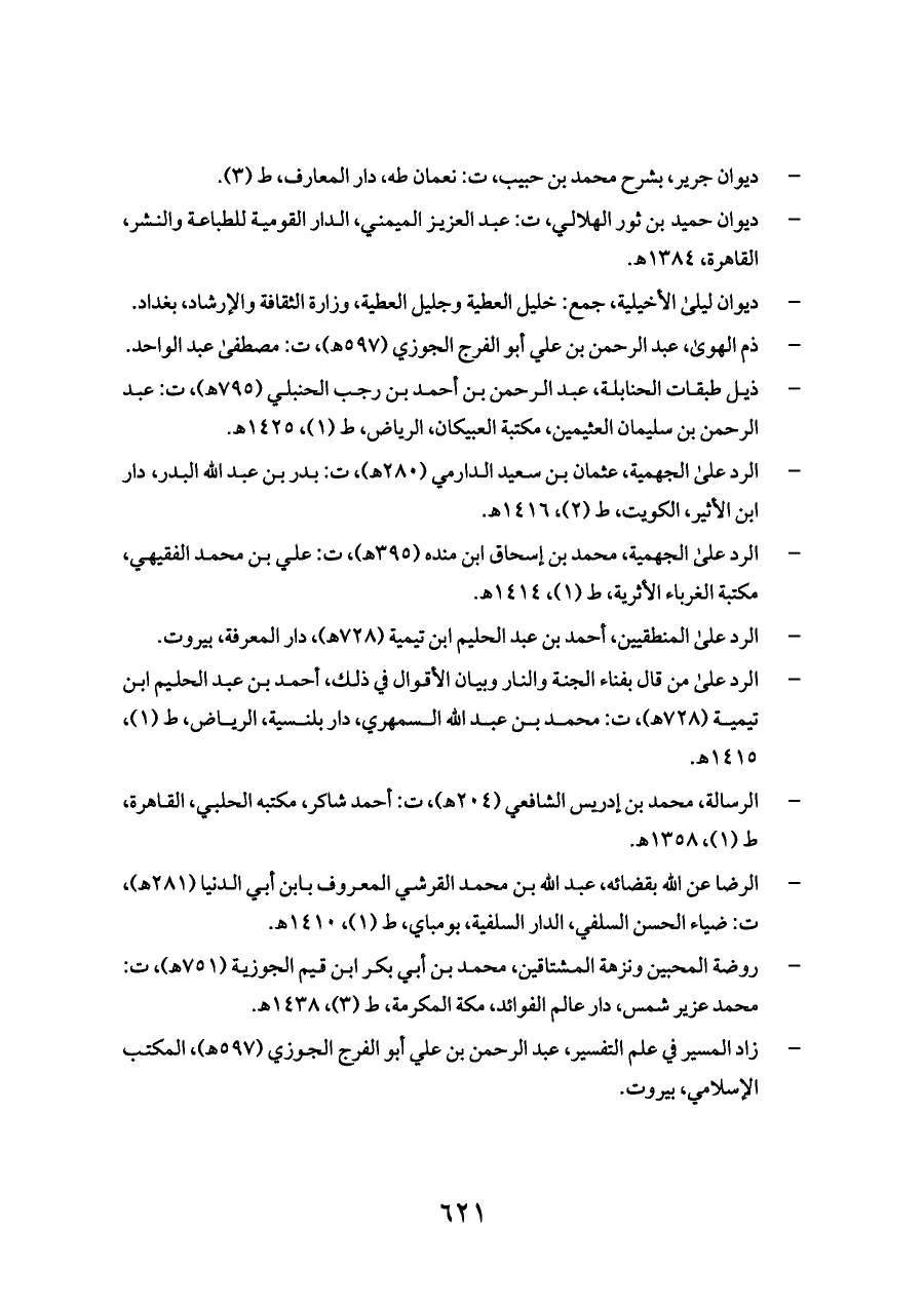 - ذيل طبقات الحنابلة، عبد الرحمن بن أحمد بن رجب الحنبلي (٧٩٥ هـ)، ت: عبد الرحمن بن سليمان العثيمين، مكتبة العبيكان، الرياض، ط (١)، ١٤٢٥ هـ.