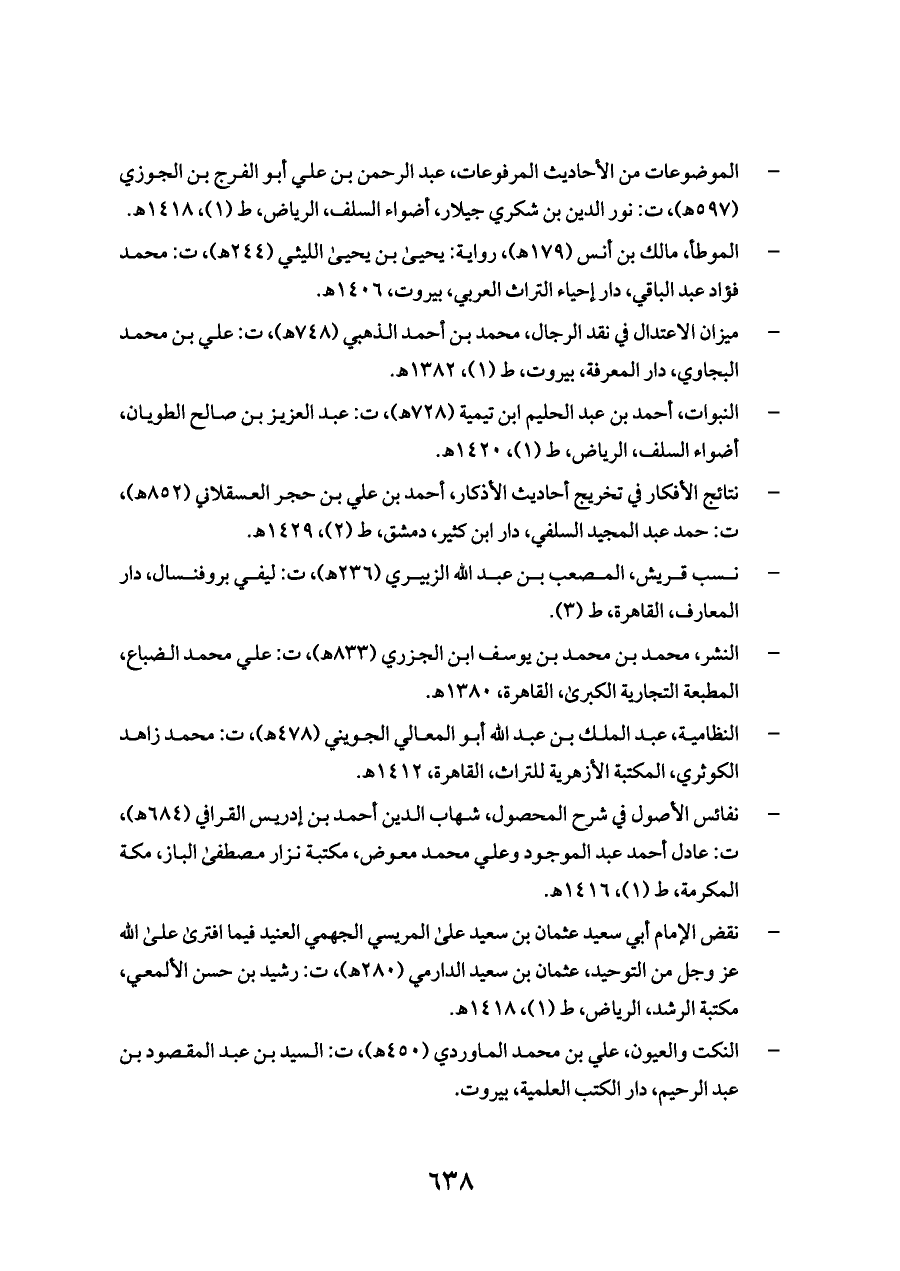 - الموضوعات من الأحاديث المرفوعات، عبد الرحمن بن علي أبو الفرج بن الجوزي (٥٩٧ هـ)، ت: نور الدين بن شكري جيلار، أضواء السلف، الرياض، ط (١)، ١٤١٨ هـ.