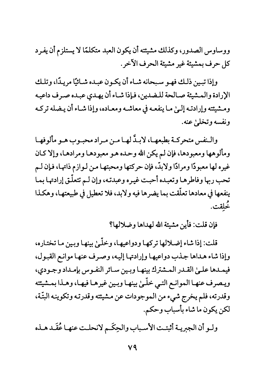 ولو أن الجبرية أثبتت الأسباب والحِكَم لانحلت عنها عُقَد هذه