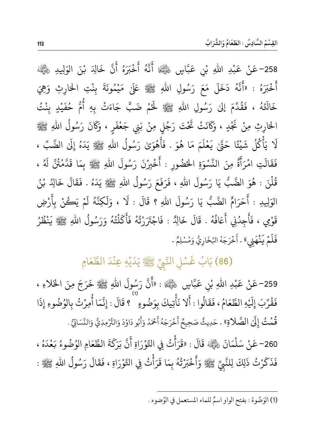 ٢٥٨ - عَنْ عَبْدِ اللهِ بْنِ عَبَّاسٍ - رضي الله عنهما - أَنَّهُ أَخْبَرَهُ أَنَّ خَالِدَ بْنَ الوَلِيدِ - رضي الله عنه -