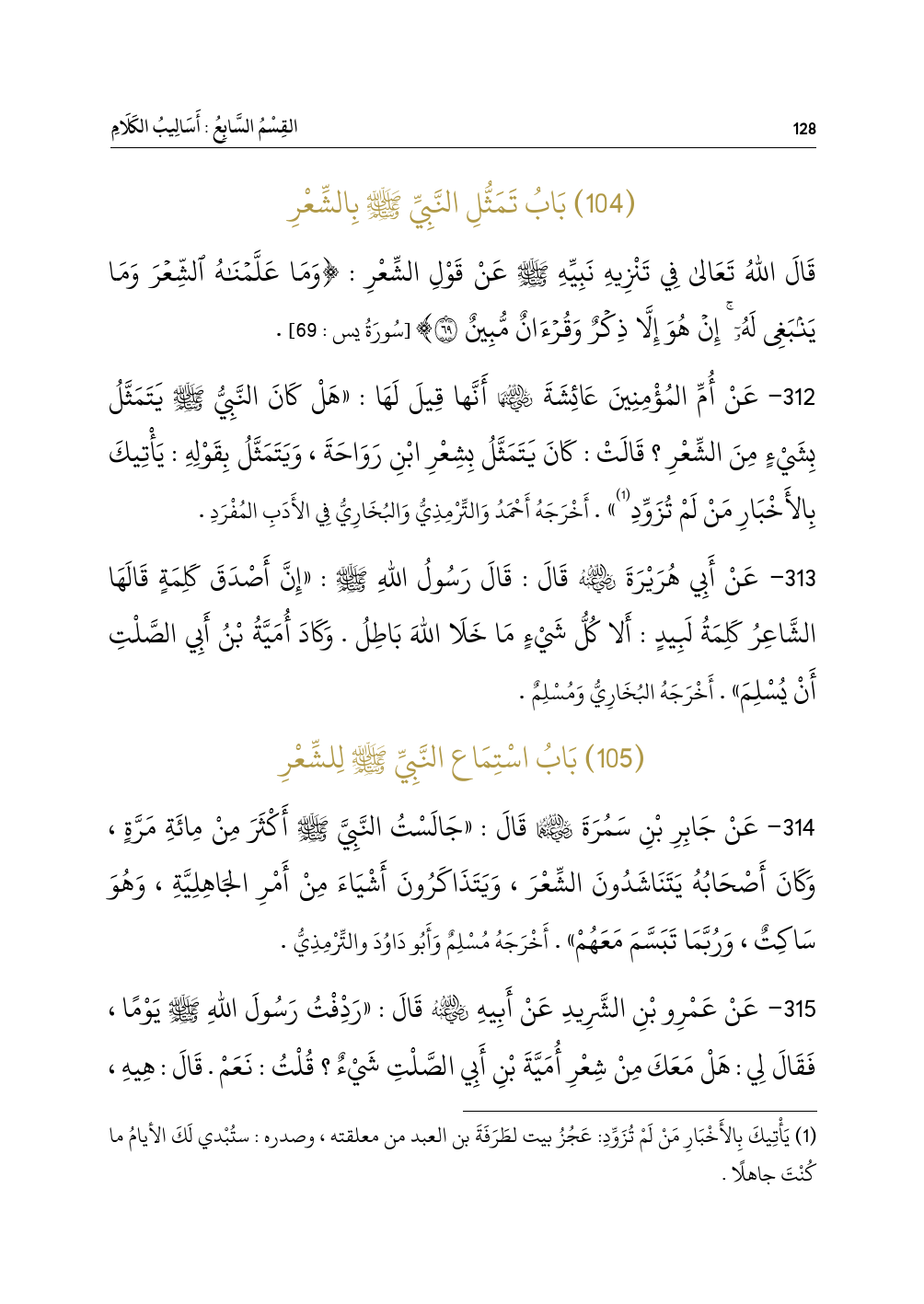 (١٠٤) بَابُ تَمَثُّلِ النَّبِيِّ - صلى الله عليه وسلم - بِالشِّعْرِ