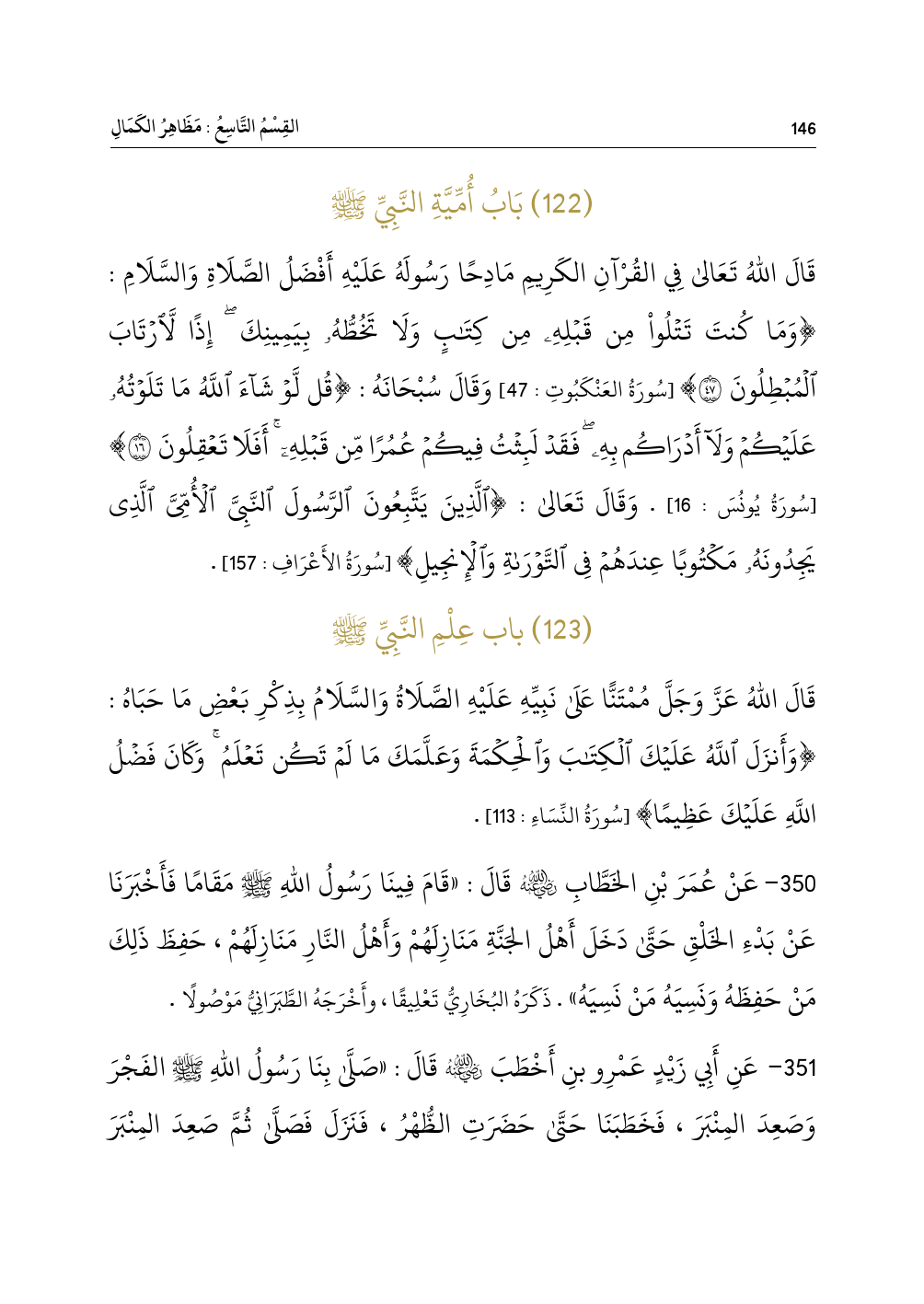 (١٢٢) بَابُ أُمِّيَّةِ النَّبِيِّ - صلى الله عليه وسلم -