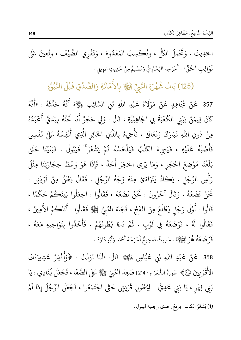(١٢٥) بَابُ شُهْرَةِ النَّبِيِّ - صلى الله عليه وسلم - بِالأَمَانَةِ وَالصِّدْقِ قَبْلَ النُّبُوَّةِ