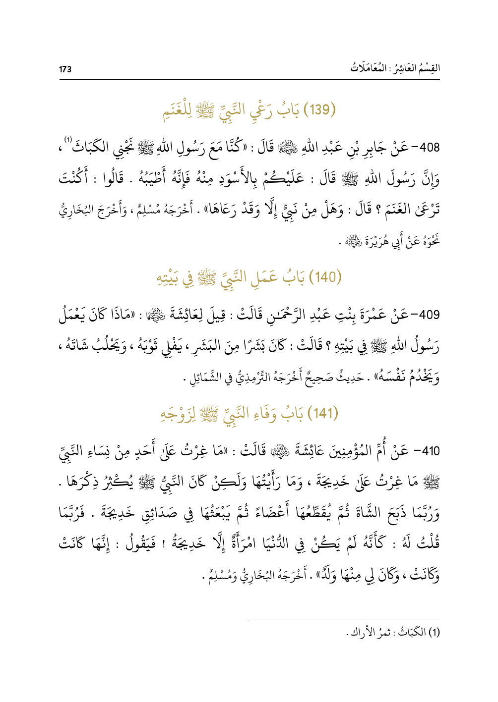 (١٣٩) بَابُ رَعْيِ النَّبِيِّ - صلى الله عليه وسلم - لِلْغَنَمِ