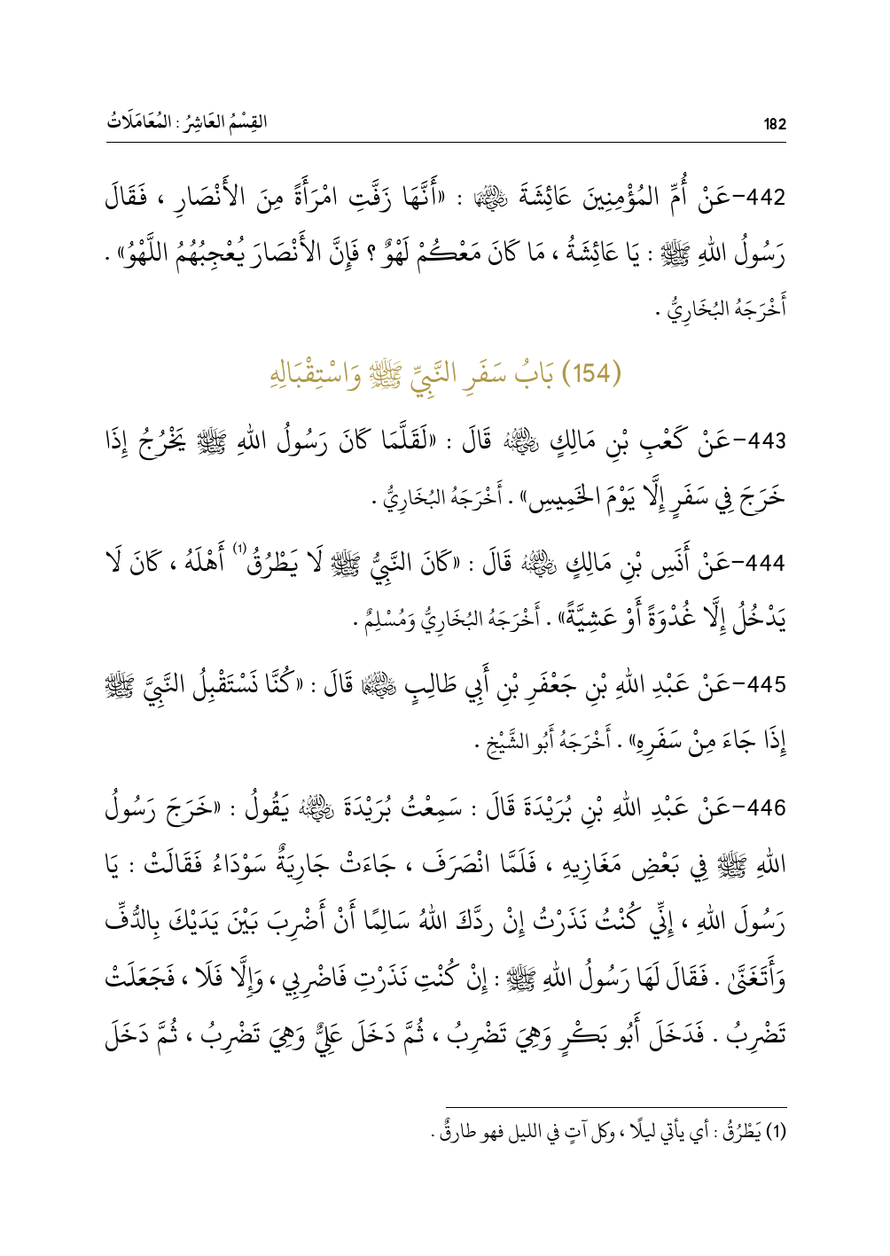 (١٥٤) بَابُ سَفَرِ النَّبِيِّ - صلى الله عليه وسلم - وَاسْتِقْبَالِهِ
