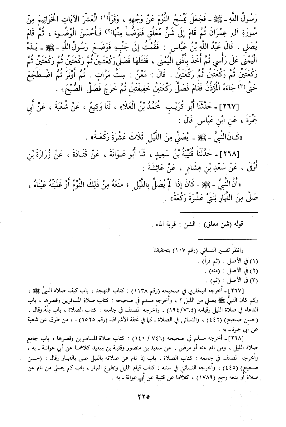 267 - حَدَّثَنَا أَبُو كُرَيْبٍ مُحَمَّدُ بْنُ الْعَلَاءِ قَالَ: حَدَّثَنَا وَكِيعٌ، عَنْ شُعْبَةَ، عَنْ أَبِي جَمْرَةَ، عَنِ ابْنِ عَبَّاسٍ قَالَ: «كَانَ النَّبِيُّ صَلَّى اللهُ عَلَيْهِ وَسَلَّمَ §يُصَلِّي مِنَ اللَّيْلِ ثَلَاثَ عَشْرَةَ رَكْعَةً»