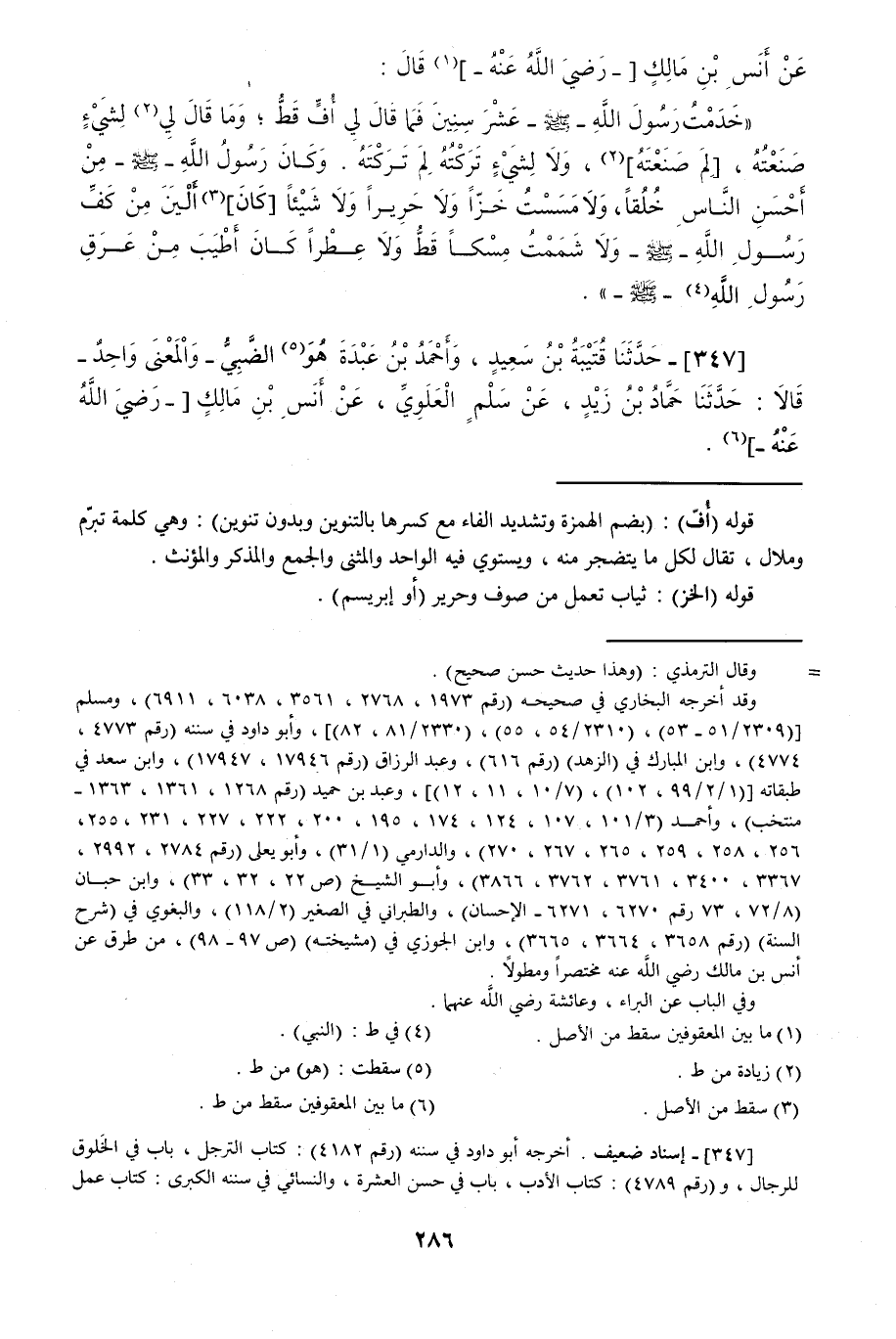 347 - حَدَّثَنَا قُتَيْبَةُ بْنُ سَعِيدٍ، وَأَحَمْدُ بْنُ عَبْدَةَ هُوَ الضَّبِّيُّ وَالْمَعْنَى وَاحِدٌ، قَالَا: حَدَّثَنَا حَمَّادُ بْنُ زَيْدٍ، عَنْ سَلْمٍ الْعَلَوِيِّ، عَنْ أَنَسِ بْنِ مَالِكٍ، عَنْ رَسُولِ اللَّهِ صَلَّى اللهُ عَلَيْهِ وَسَلَّمَ أَنَّهُ كَانَ عِنْدَهُ رَجُلٌ بِهِ أَثَرُ صُفْرَةٍ قَالَ: وَكَانَ رَسُولُ اللَّهِ صَلَّى اللهُ عَلَيْهِ وَسَلَّمَ لَا يكَادُ يُواجِهُ أَحَدًا بِشَيْءٍ يَكْرَهُهُ، فَلَمَّا قَامَ قَالَ لِلْقَوْمِ: «§لَوْ قُلْتُمْ لَهُ يَدَعُ هَذِهِ الصُّفْرَةَ»