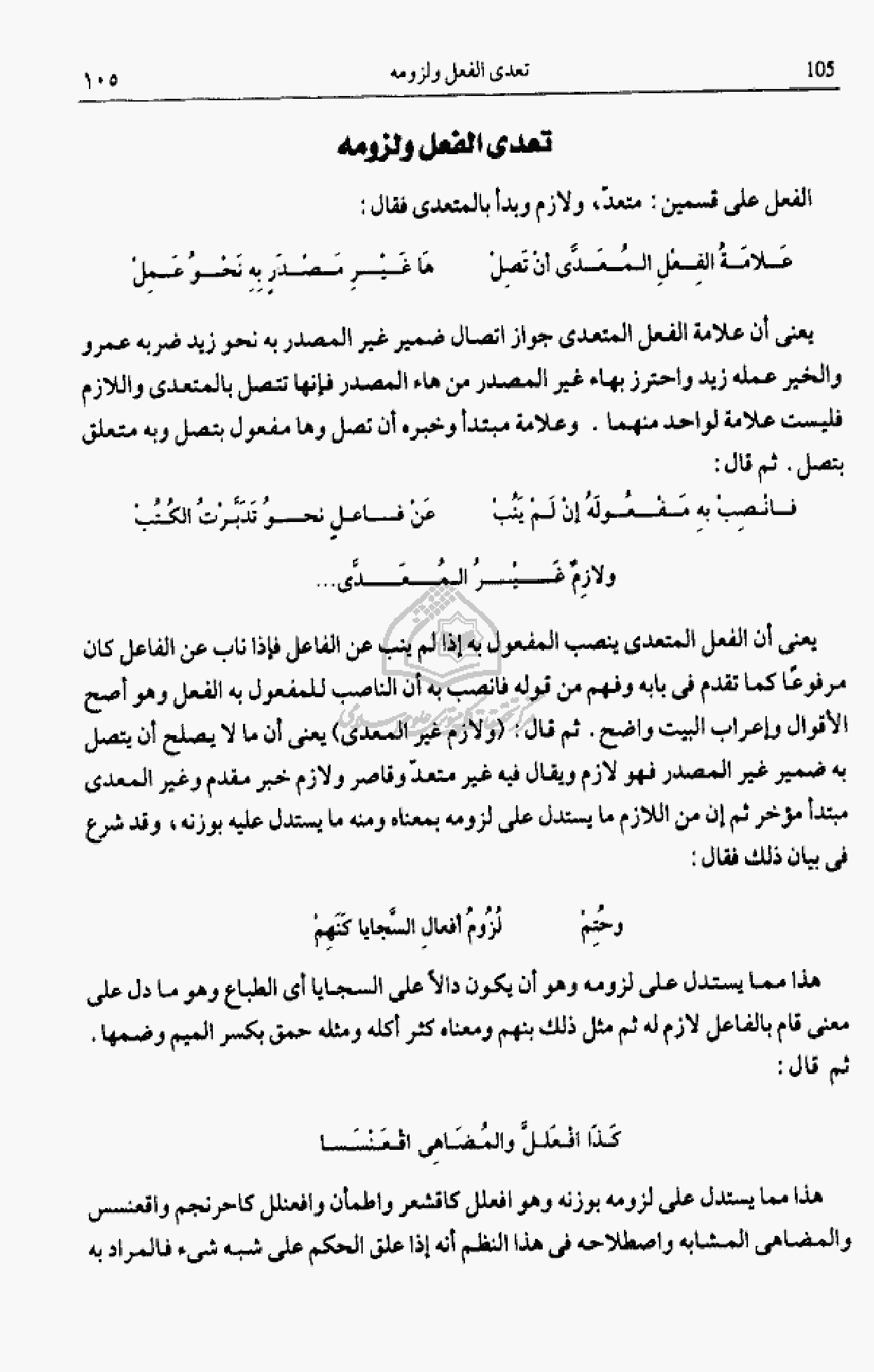 الفعل على قسمين: متعدّ، ولازم وبدأ بالمتعدى فقال:
