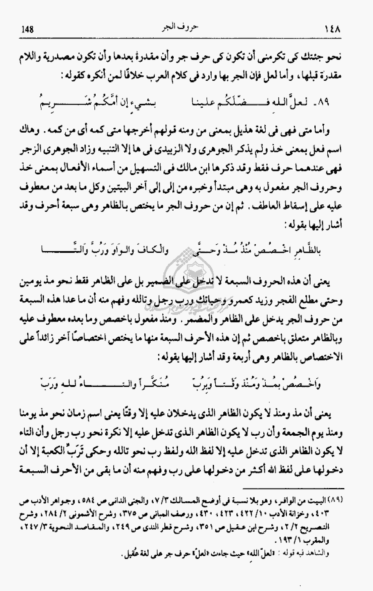 (¬89) البيت من الوافر، وهو بلا نسبة فى أوضح المسالك 3/ 7، والجنى الدانى ص 584، وجواهر الأدب ص 403، وخزانة الأدب 10/ 422، 423، 430، ورصف المبانى ص 375، وشرح الأشمونى 2/ 284، وشرح التصريح 2/ 2، وشرح ابن عقيل ص 351، وشرح قطر الندى ص 249، والمقاصد النحوية 3/ 247، والمقرب 1/ 193.