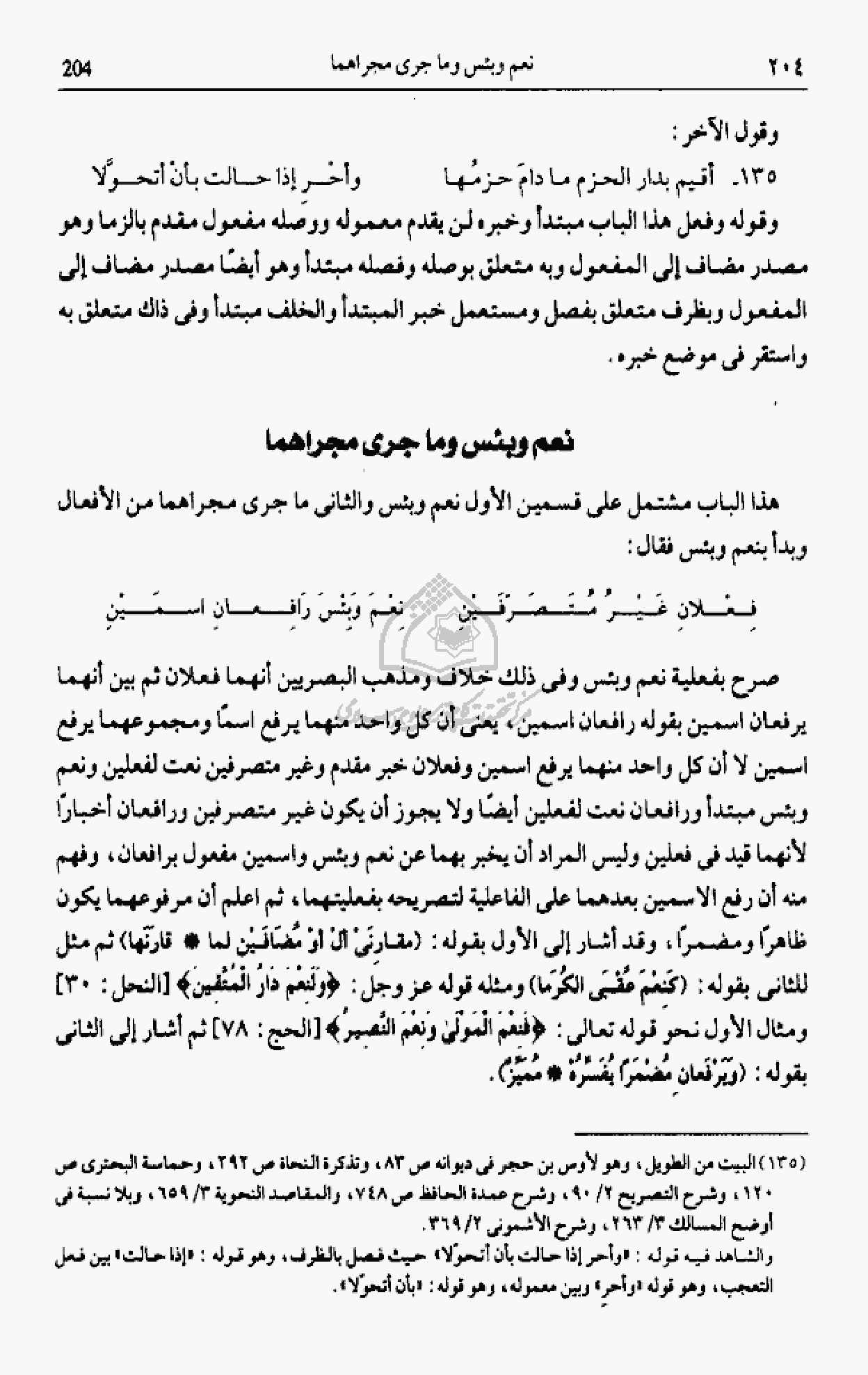 (¬135) البيت من الطويل، وهو لأوس بن حجر فى ديوانه ص 83، وتذكرة النحاة ص 292، وحماسة البحترى ص 120، وشرح التصريح 2/ 90، وشرح عمدة الحافظ ص 748، والمقاصد النحوية 3/ 659، وبلا نسبة فى أوضح المسالك 3/ 263، وشرح الأشمونى 2/ 369.