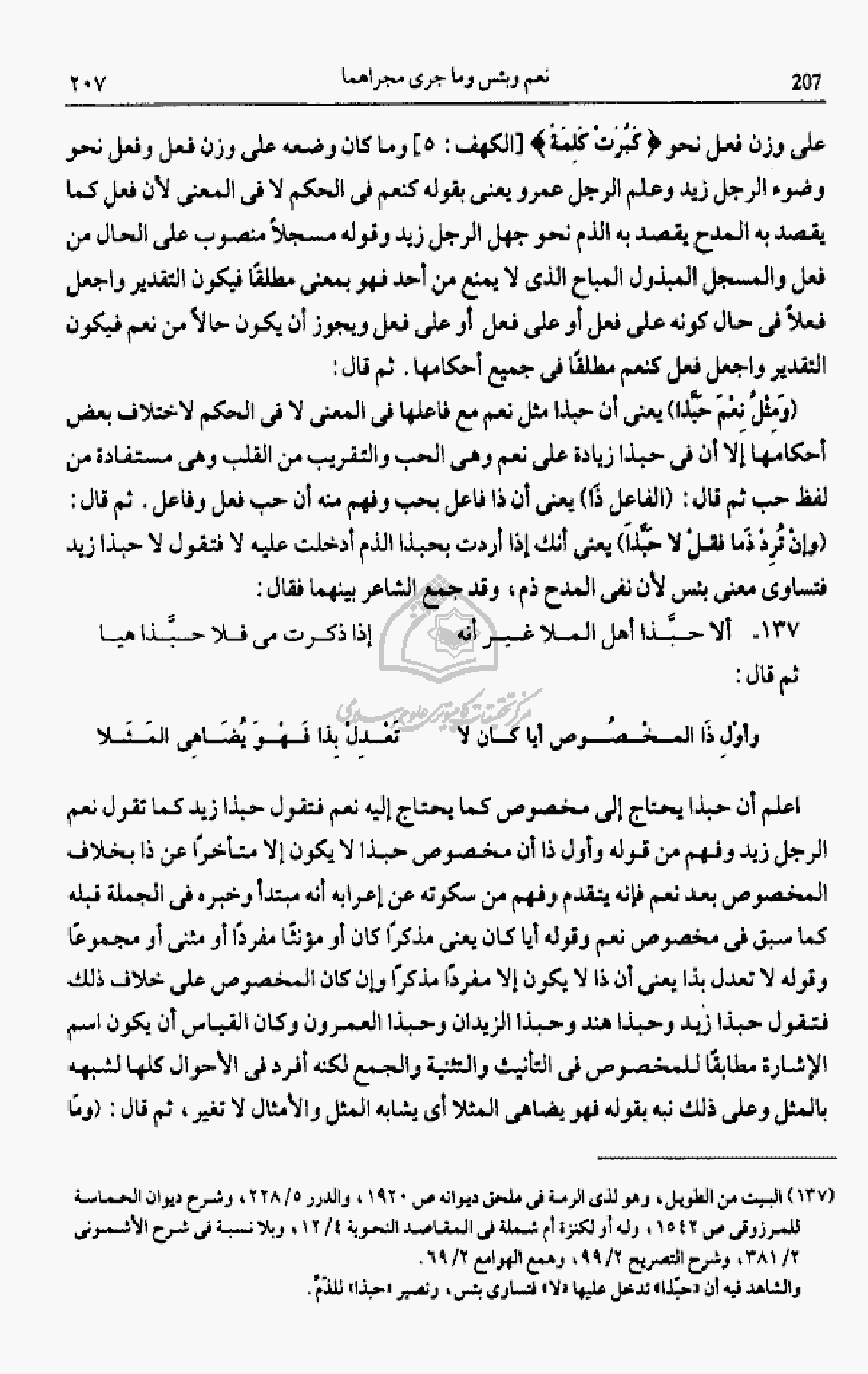 (¬137) البيت من الطويل، وهو لذى الرمة فى ملحق ديوانه ص 1920، والدرر 5/ 228، وشرح ديوان الحماسة للمرزوقى ص 1542، وله أو لكنزة أم شملة فى المقاصد النحوية 4/ 12، وبلا نسبة فى شرح الأشمونى 2/ 381، وشرح التصريح 2/ 99، وهمع الهوامع 2/ 69.