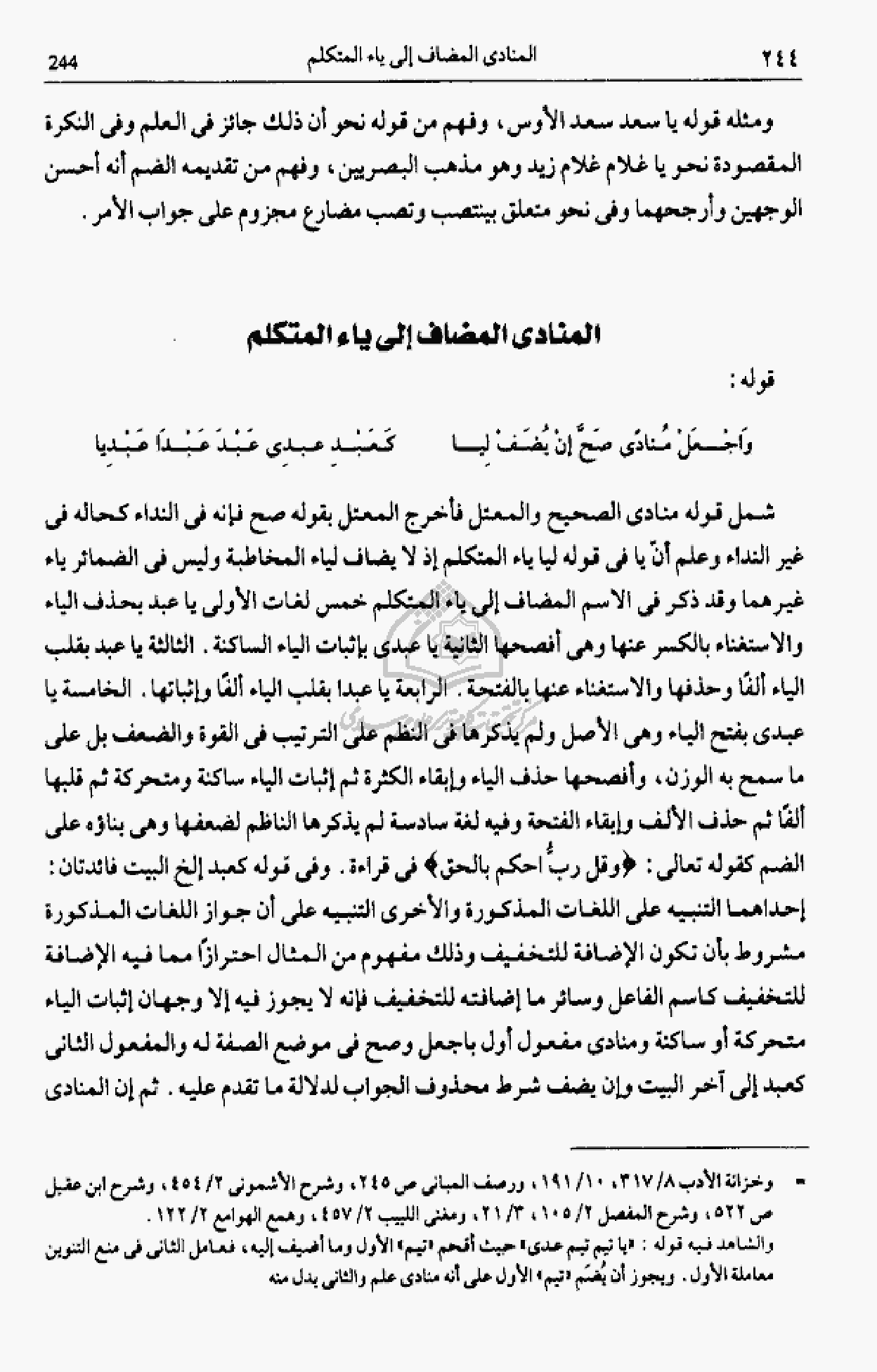 واجعل منادى صحّ إن يضف ليا … كعبد عبدى عبد عبدا عبديا