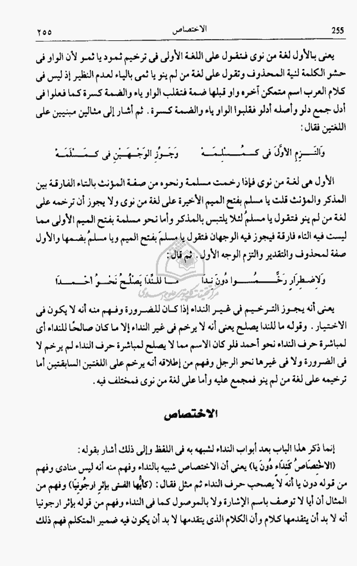 ولاضطرار رخّموا دون ندا … ما للنّدا يصلح نحو أحمدا