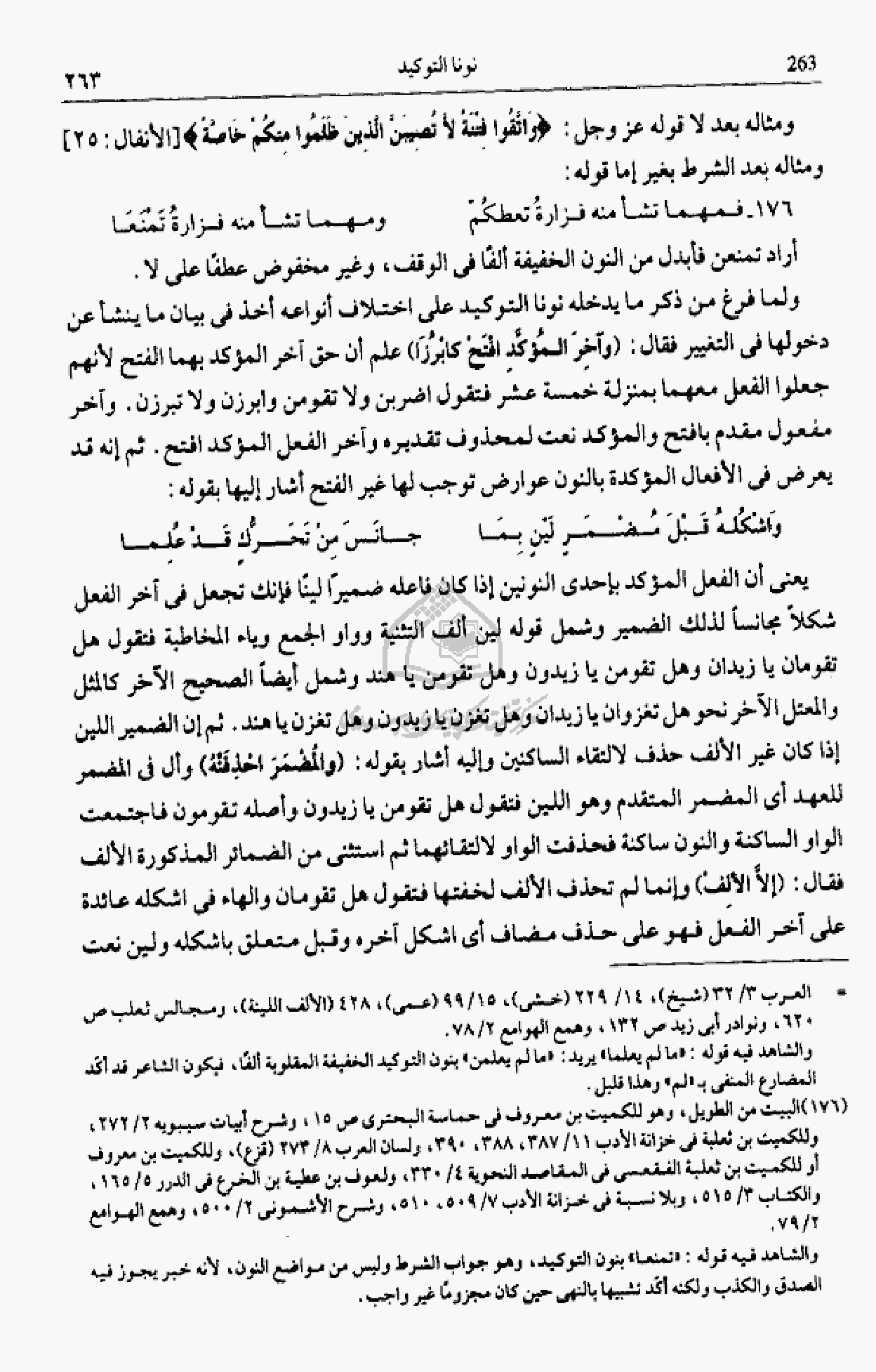 والشاهد فيه قوله: «ما لم يعلما» يريد: «ما لم يعلمن» بنون التوكيد الخفيفة المقلوبة ألفا، فيكون الشاعر قد أكّد المضارع المنفى ب «لم» وهذا قليل.