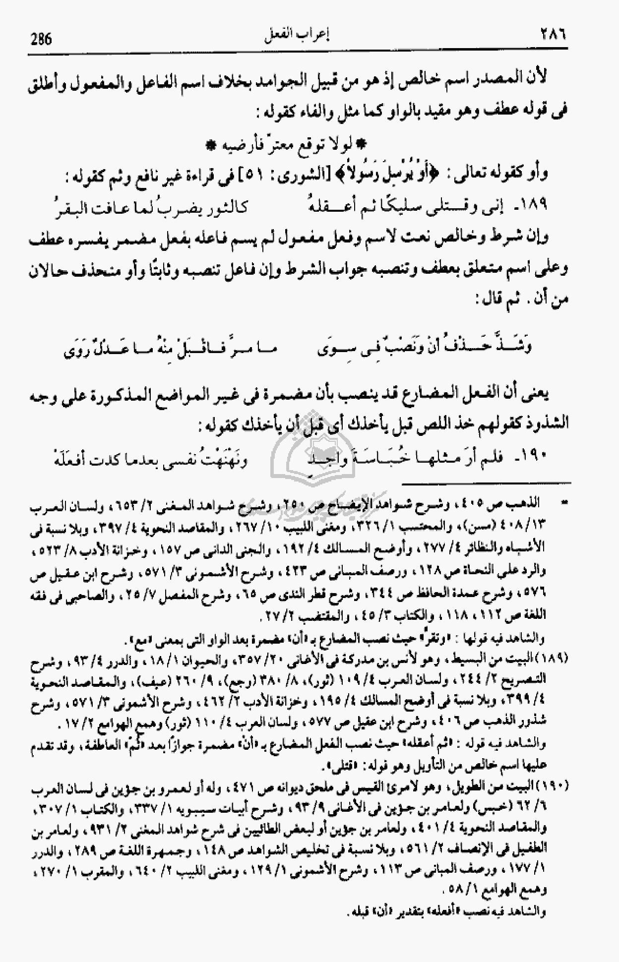 والشاهد فيه قوله: «ثم أعقله» حيث نصب الفعل المضارع ب «أن» مضمرة جوازا بعد «ثمّ» العاطفة، وقد تقدم عليها اسم خالص من التأويل وهو قوله: «قتلى».