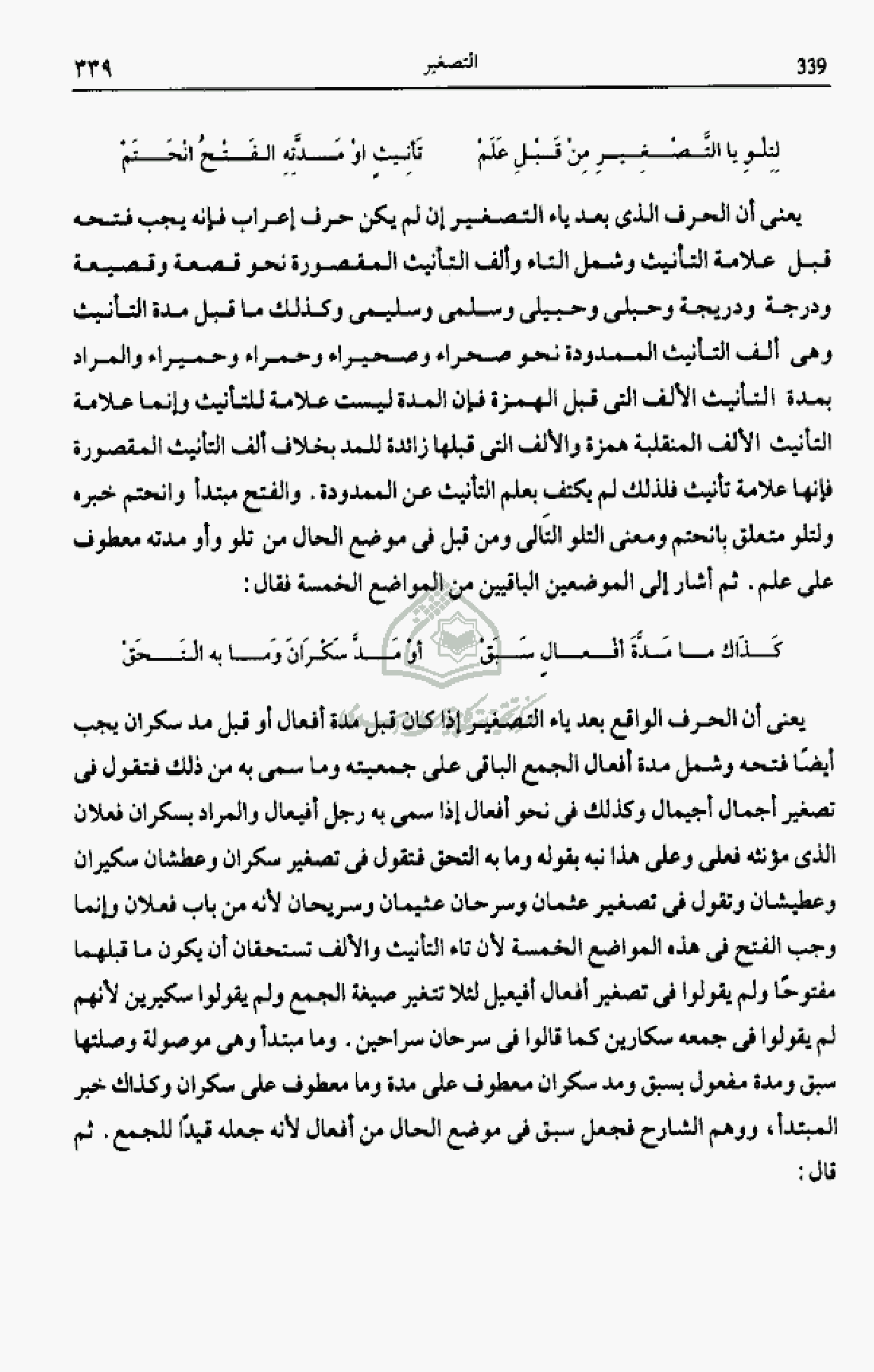 لتلو يا التّصغير من قبل علم … تأنيث او مدّته الفتح انحتم
