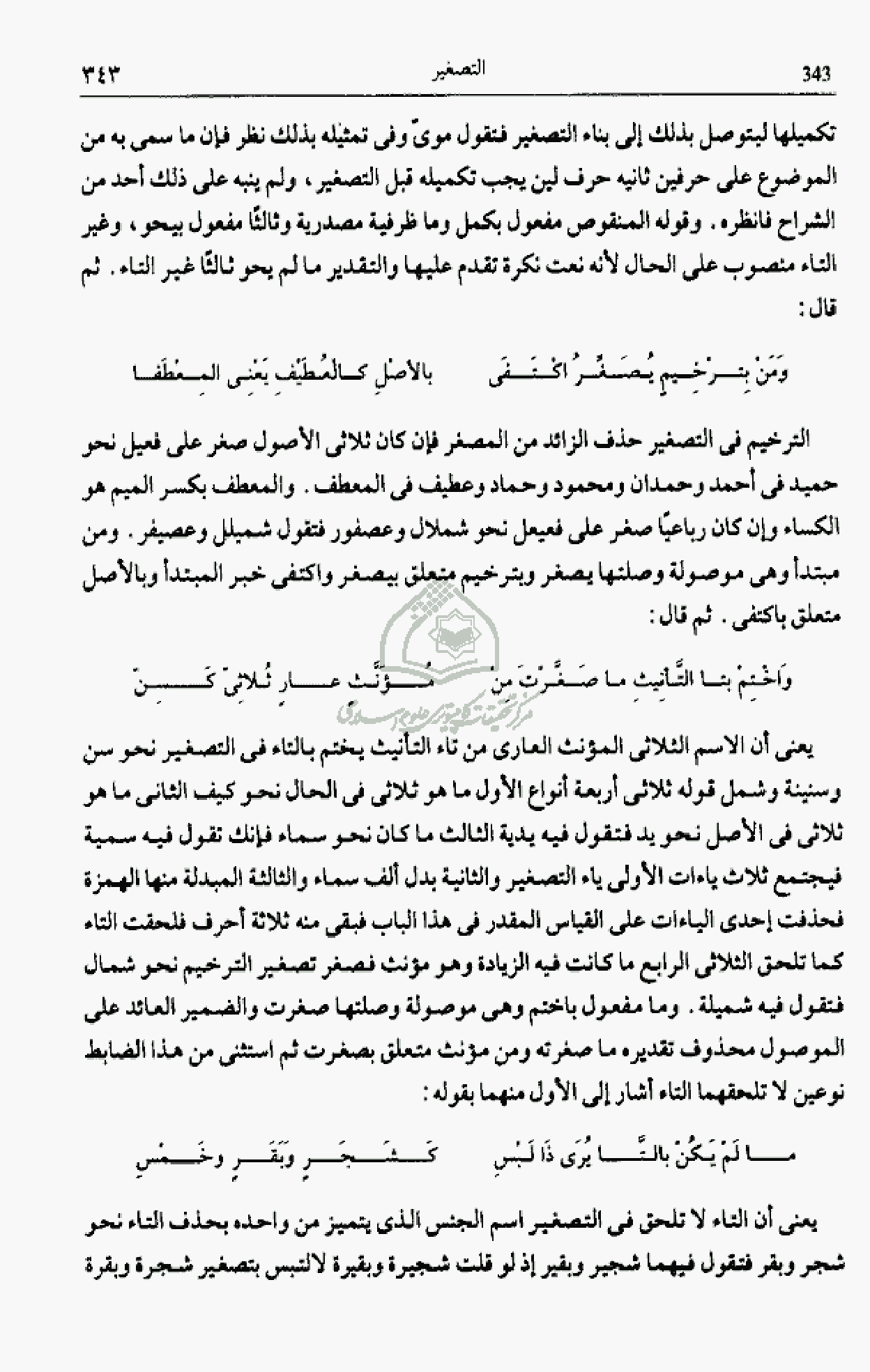 ومن بترخيم يصغّر اكتفى … بالأصل كالعطيف يعنى المعطفا