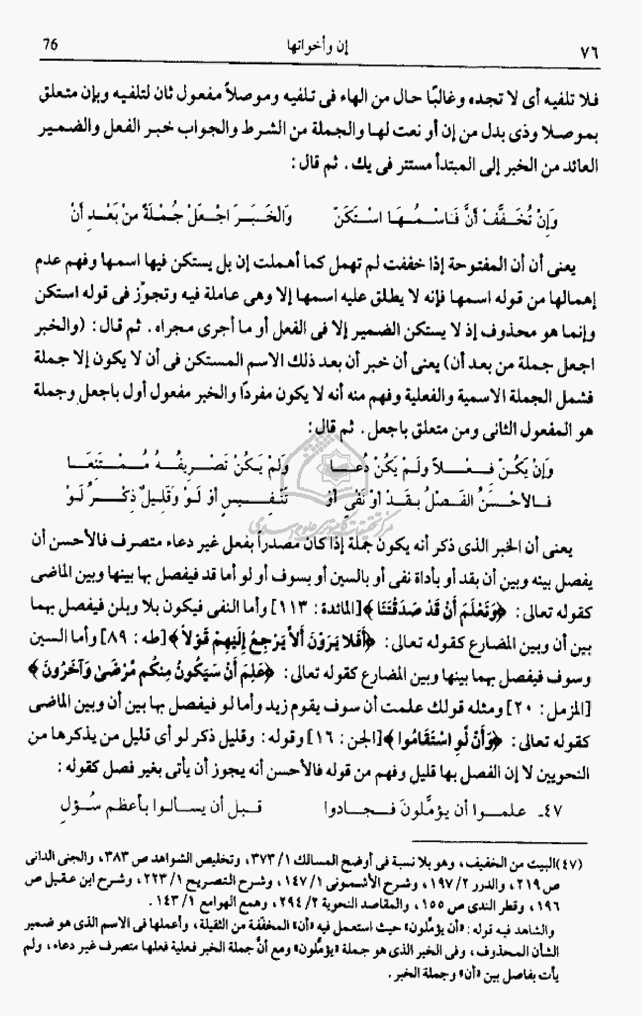 (¬47) البيت من الخفيف، وهو بلا نسبة فى أوضح المسالك 1/ 373، وتخليص الشواهد ص 383، والجنى الدانى ص 219، والدرر 2/ 197، وشرح الأشمونى 1/ 147، وشرح التصريح 1/ 223، وشرح ابن عقيل ص 196، وقطر الندى ص 155، والمقاصد النحوية 2/ 294، وهمع الهوامع 1/ 143.