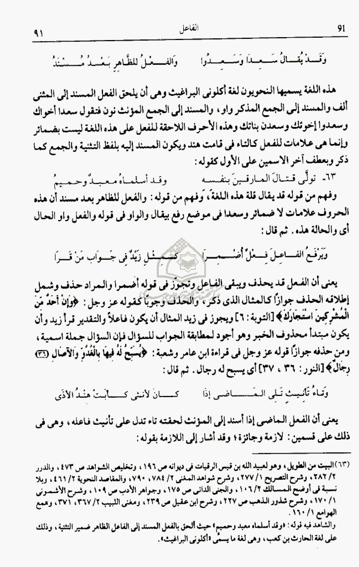 (¬63) البيت من الطويل، وهو لعبيد الله بن قيس الرقيات فى ديوانه ص 196، وتخليص الشواهد ص 473، والدرر 2/ 282، وشرح التصريح