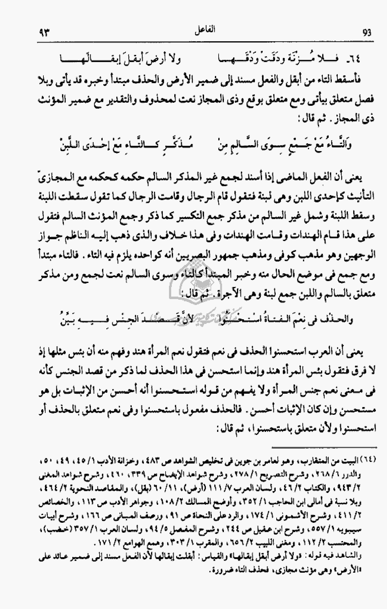 (¬64) البيت من المتقارب، وهو لعامر بن جوين فى تخليص الشواهد ص 483، وخزانة الأدب 1/ 45، 49، 50، والدرر 6/ 268، وشرح التصريح 1/ 278، وشرح شواهد الإيضاح ص 339، 460، وشرح شواهد المغنى 2/ 943، والكتاب 2/ 46، ولسان العرب 7/ 111 (أرض)، 11/ 60 (بقل)، والمقاصد النحوية 2/ 464، وبلا نسبة فى أمالى ابن الحاجب 1/ 352، وأوضح المسالك 2/ 108، وجواهر الأدب ص 113، والخصائص 2/ 411، وشرح الأشمونى 1/ 174، والرد على النحاة ص 91، ورصف المبانى ص 166، وشرح أبيات سيبويه 1/ 557، وشرح ابن عقيل ص 244، وشرح المفصل 5/ 94، ولسان العرب 1/ 357 (خضب)، والمحتسب 2/ 112، ومغنى اللبيب 2/ 656، والمقرب 1/ 303، وهمع الهوامع 2/ 171.