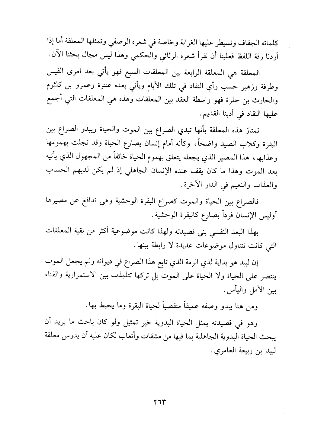 وهو في قصيدته يمثل الحياة البدوية خير تمثيل ولو كان باحث ما يريد أن يبحث الحياة البدوية الجاهلية بما فيها من مشقات وأتعاب لكان عليه أن يدرس معلقة لبيد بن ربيعة العامري.