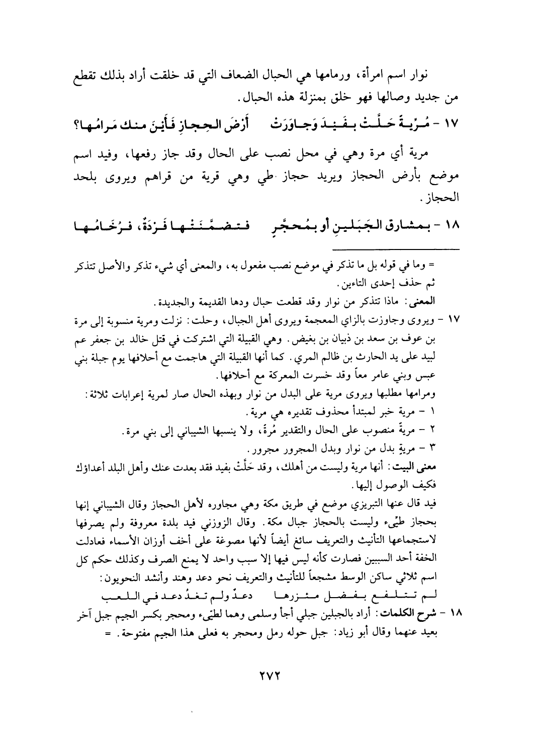 مرية أي مرة وهي في محل نصب على الحال وقد جاز رفعها، وفيد اسم موضع بأرض الحجاز ويريد حجاز طي وهي قرية من قراهم ويروى بلحد الحجاز.