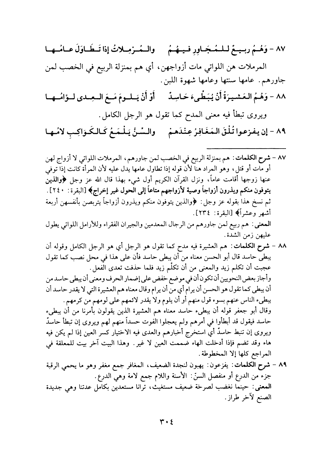 المرملات هنا اللواتي مات أزواجهن، أي هم بمنزلة الربيع في الخصب لمن جاورهم. عامها سنتها وعامها شهوة اللبن.