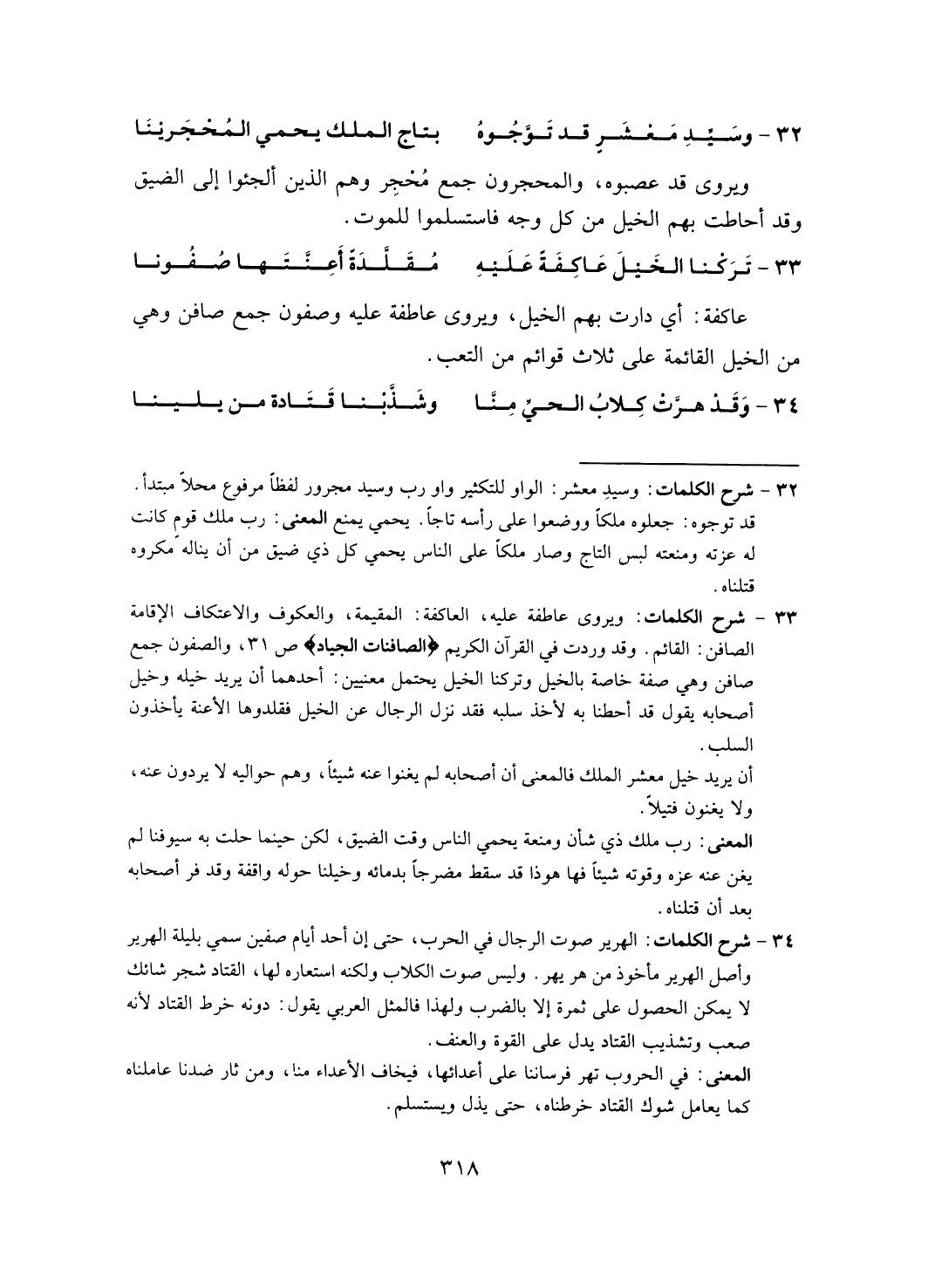 وسيد معشر قد تؤجوه=بتاج الملك يحمي المحجرينا ويروى قد عصبوه، والمحجرون محجر وهم الذين ألجئوا إلى الضيق وقد أحاطت بهم الخيل من كل وجه فاستلموا للموت.