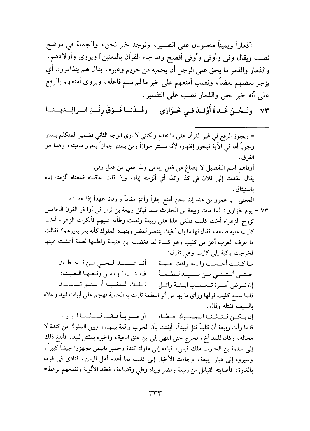 [ذمارا ويمينا منصوبان على التفسير، ونوجد خبر نحن، والجملة في موضع نصب ويقال وفى أوفى أفصح وقد جاء القرآن باللغتين] ويروى وأولادهم، والذمار والذمر ما يحق على الرجل أن يحميه من حريم وغيره، يقال هم يتذامرون أي يزجر بعضهم بعضا، ونصب أمنعهم على خبر ما لم يسم فاعله، ويروى أمنعهم بالرفع على أنه خبر نحن والدمار نصب على التفسير.