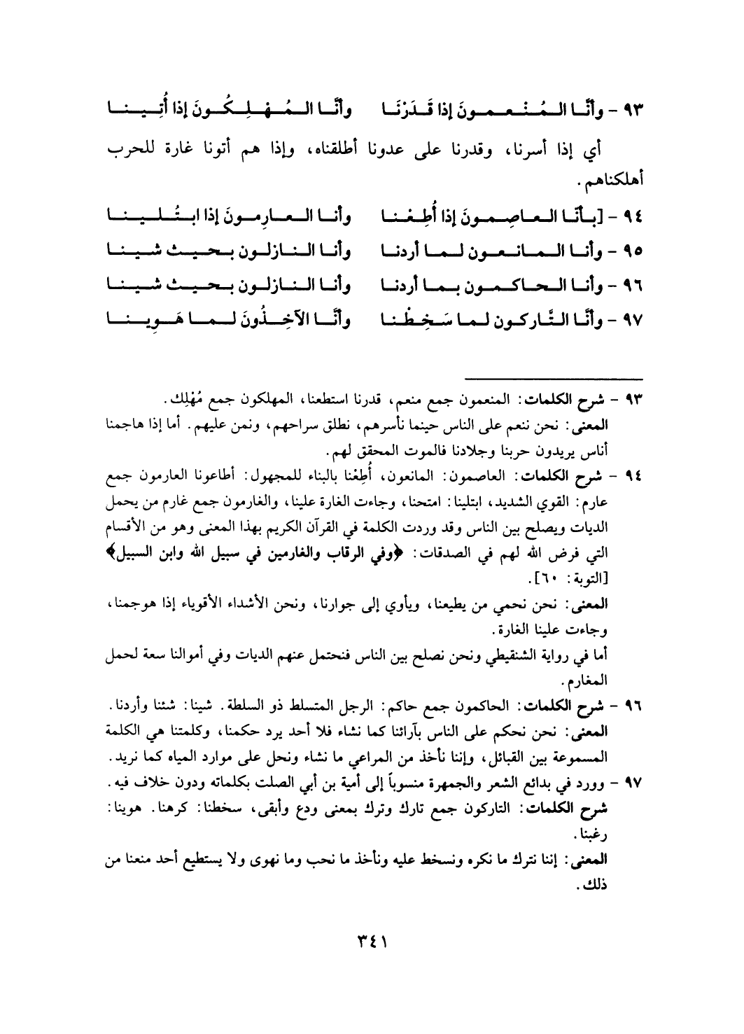 وأّنا الحاكمون بما أردنا ... وأنّا النازلون بحيث شينا