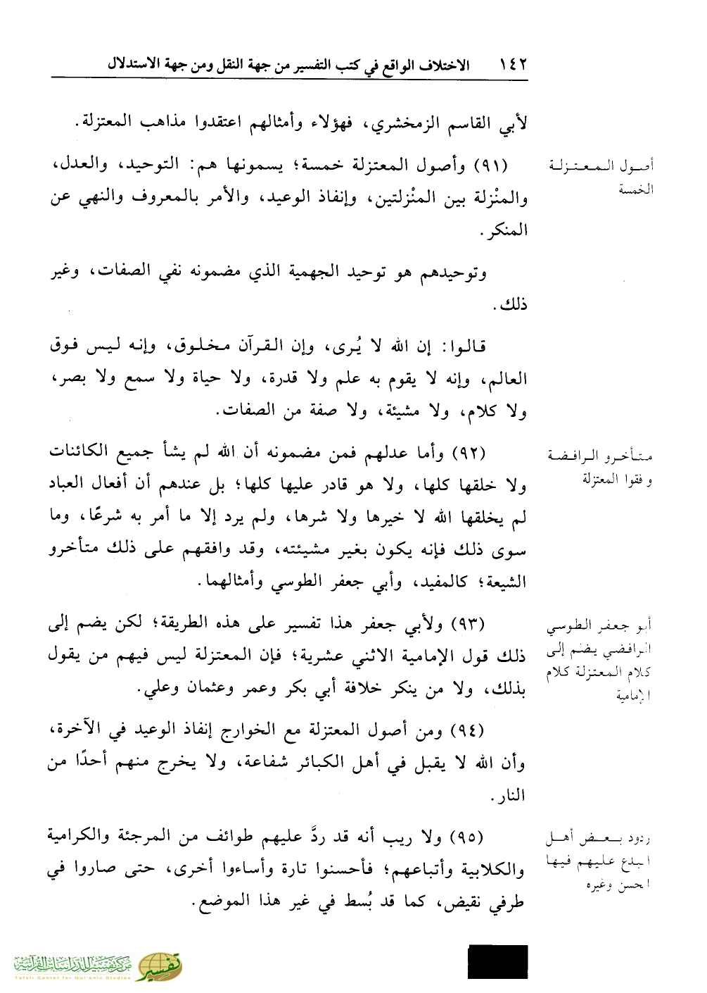 (93) ولأبي جعفر هذا تفسير على هذه الطريقة؛ لكن يضم إلى ذلك قول الإمامية الاثني عشرية؛ فإن المعتزلة ليس فيهم من يقول بذلك، ولا من ينكر خلافة أبي بكر وعمر وعثمان وعلي.